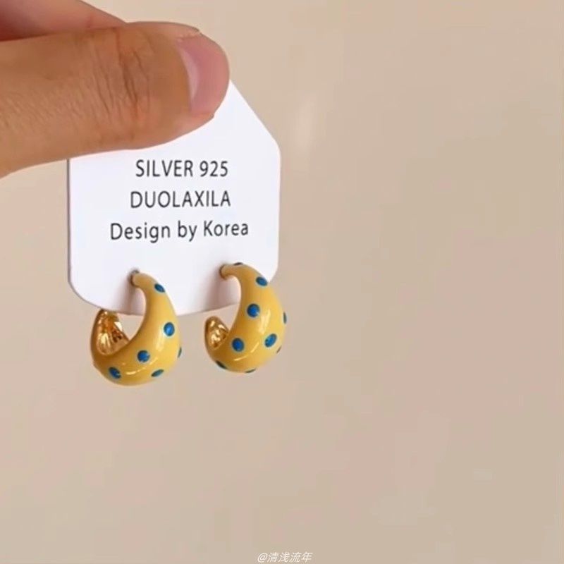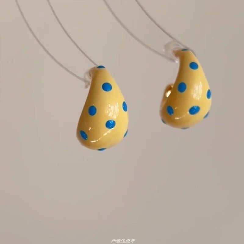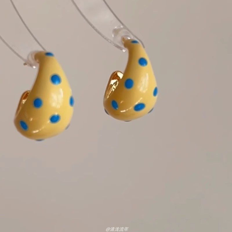 밀크 옐로우 웨이브 도트 오일 드롭 하프 링 귀걸이 높은 느낌 기질 귀걸이 봄과 여름 신선한 귀걸이 여성용 2025 새로운스토어 가기