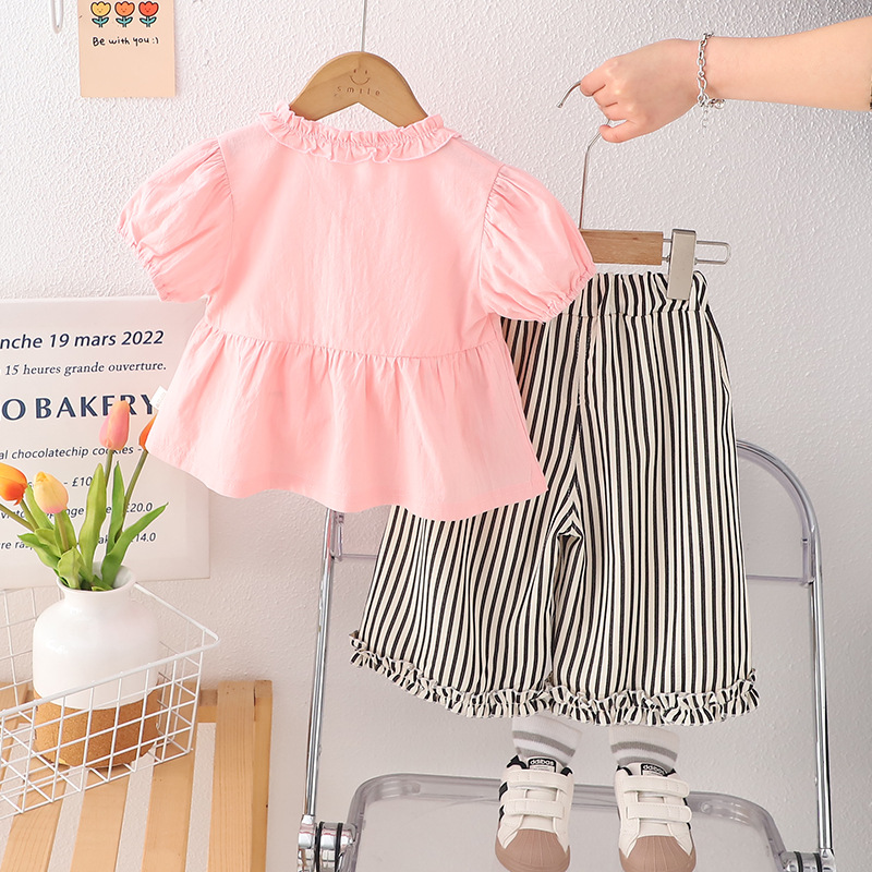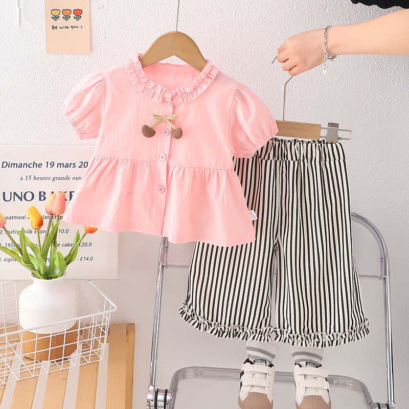 패셔너블한 인터넷 연예인 여름 신작 2 여아 달콤하고 귀여운 퍼프 슬리브 반팔 1 어린이 3 아기 얇은 투피스 세트