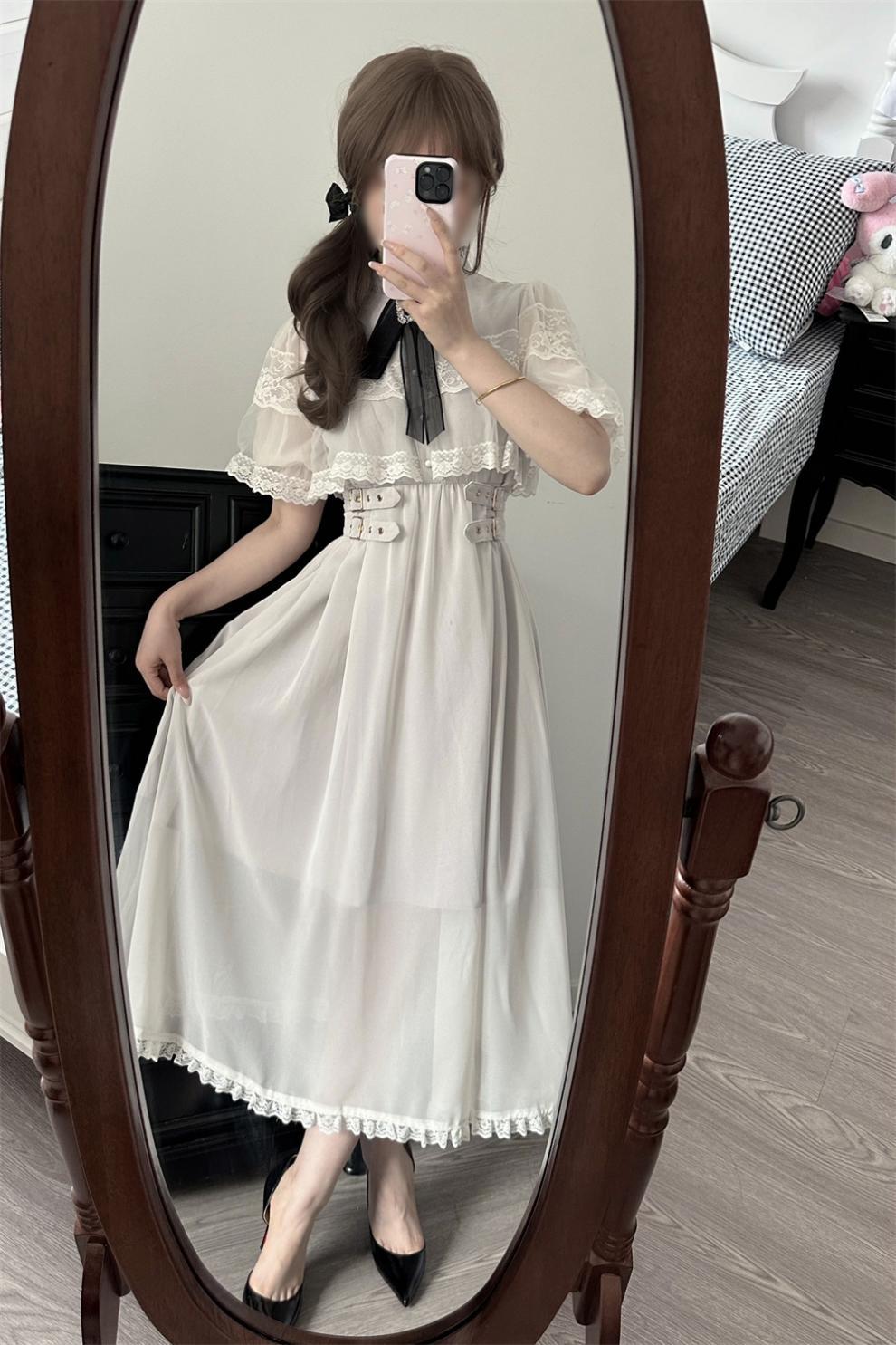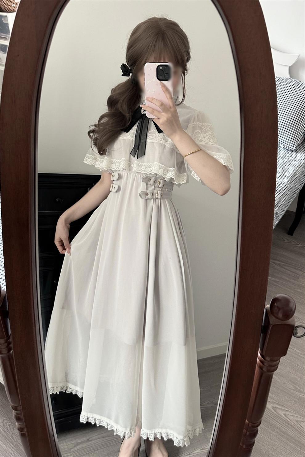 달콤한 로리타 로리타 레이스 스티칭 블라우스 망토 원피스 여름 새로운 슬림핏 슬림핏 여성용 롱 원피스스토어 가기