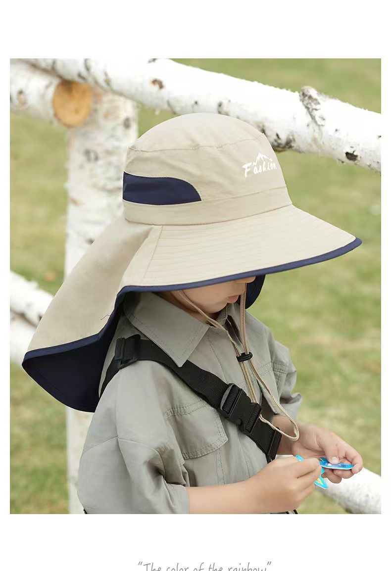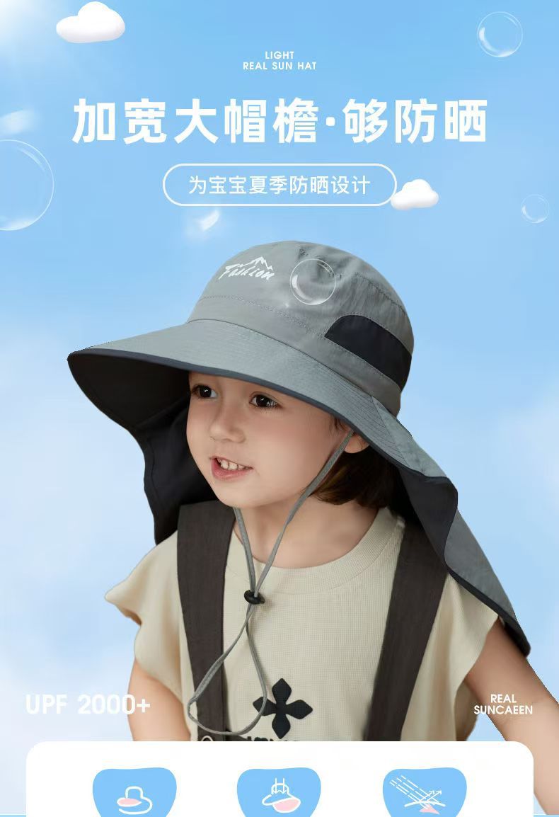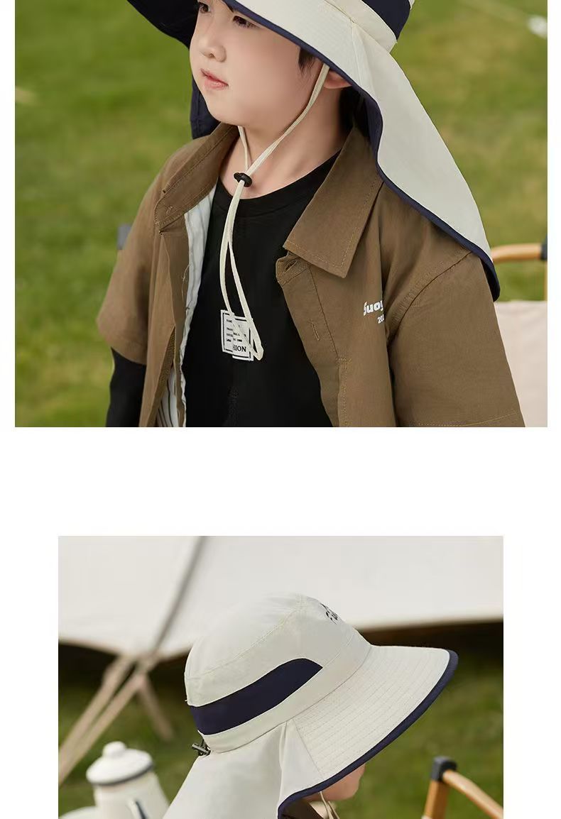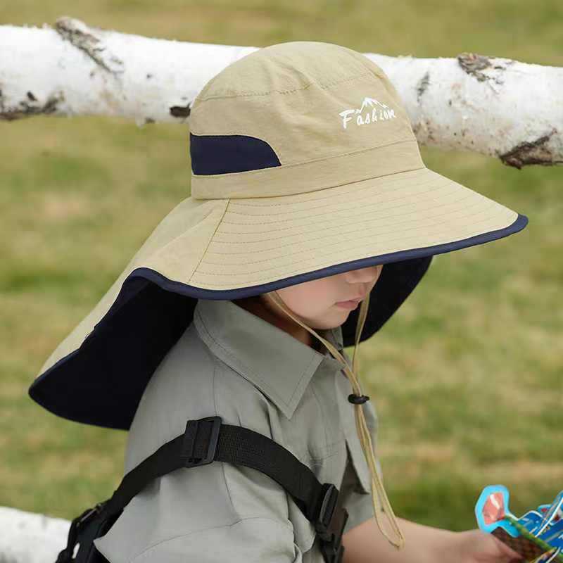 어린이 선 스크린 모자 남자의 등산 큰 처마 어부 모자 여름 자외선 야외 목 보호 태양 모자 목도리 태양 모자스토어 가기