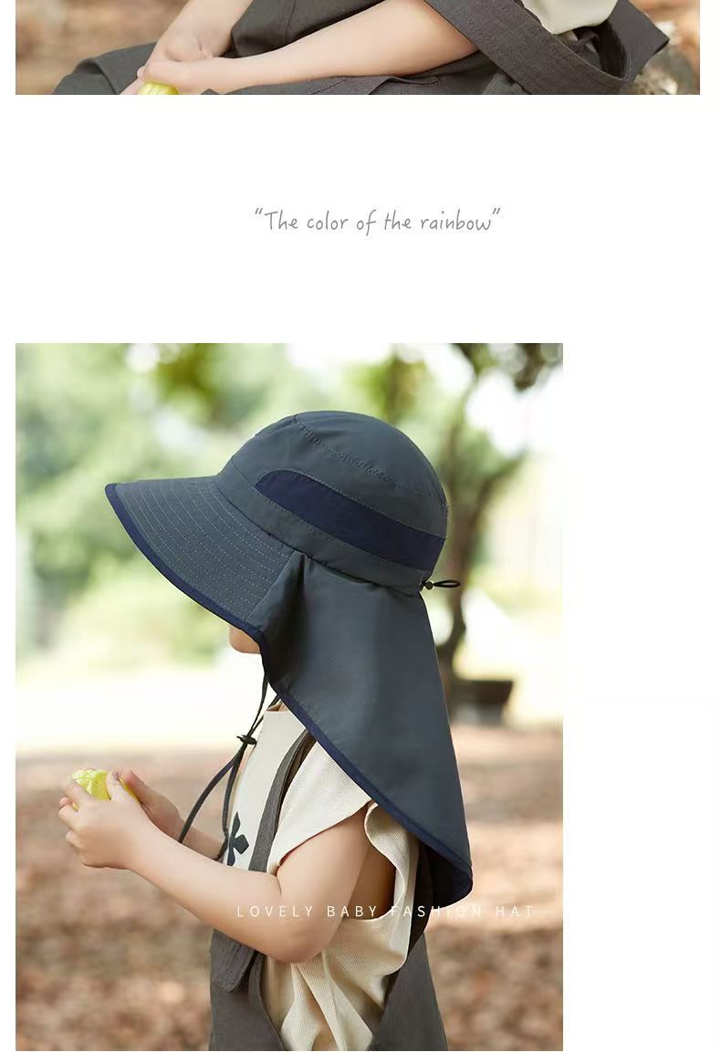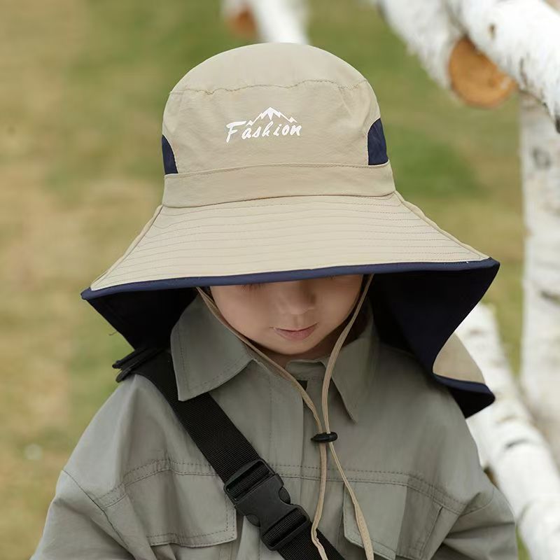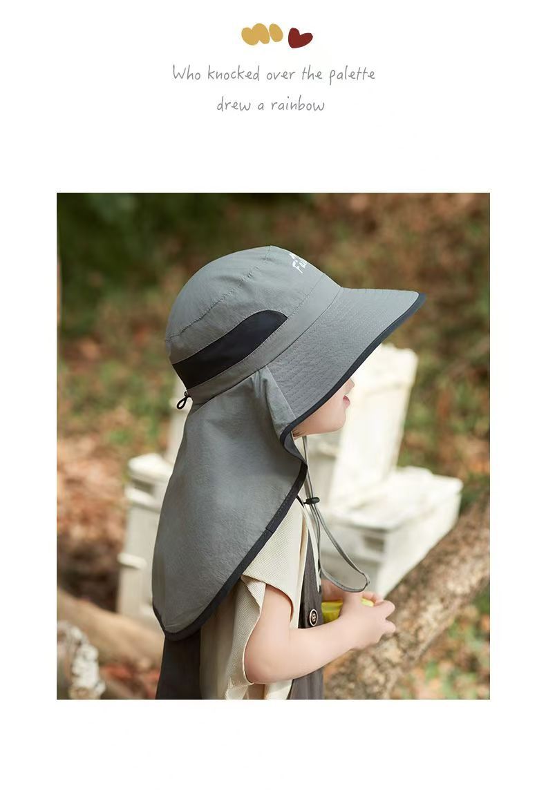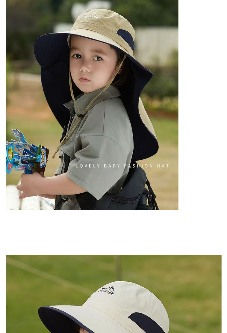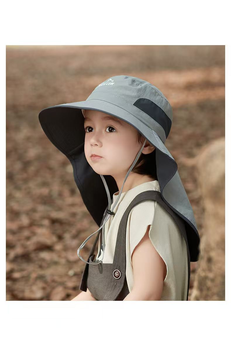 어린이 선 스크린 모자 남자의 등산 큰 처마 어부 모자 여름 자외선 야외 목 보호 태양 모자 목도리 태양 모자스토어 가기