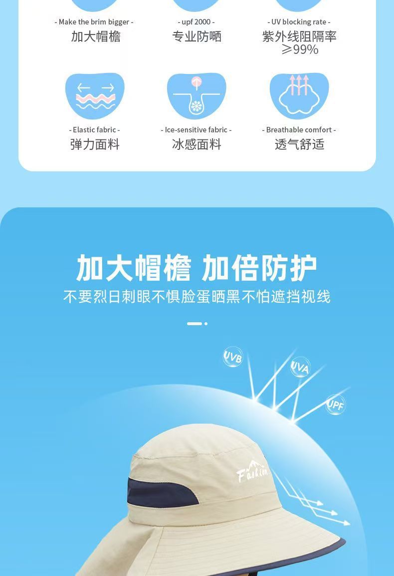 어린이 선 스크린 모자 남자의 등산 큰 처마 어부 모자 여름 자외선 야외 목 보호 태양 모자 목도리 태양 모자