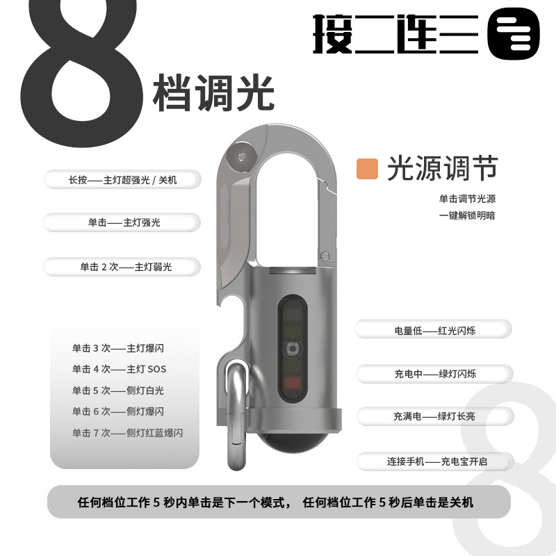 후크 포켓 조명 램프 홍수 조명 손전등과 다기능 미니 키 체인 램프 야외 기내