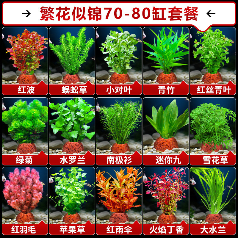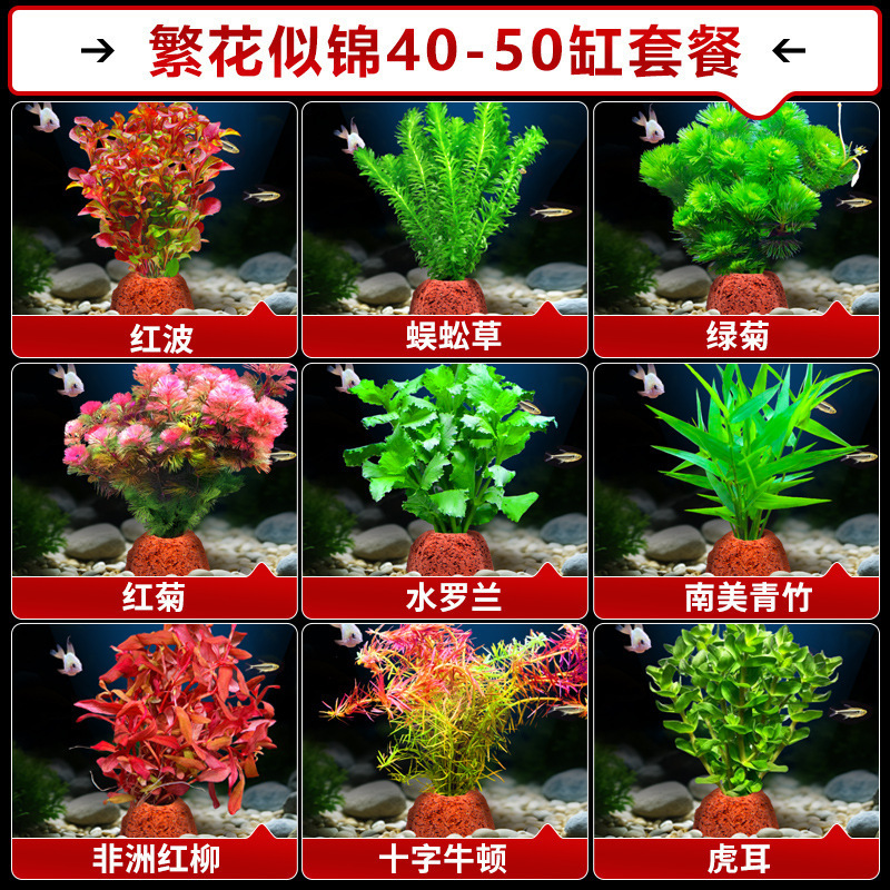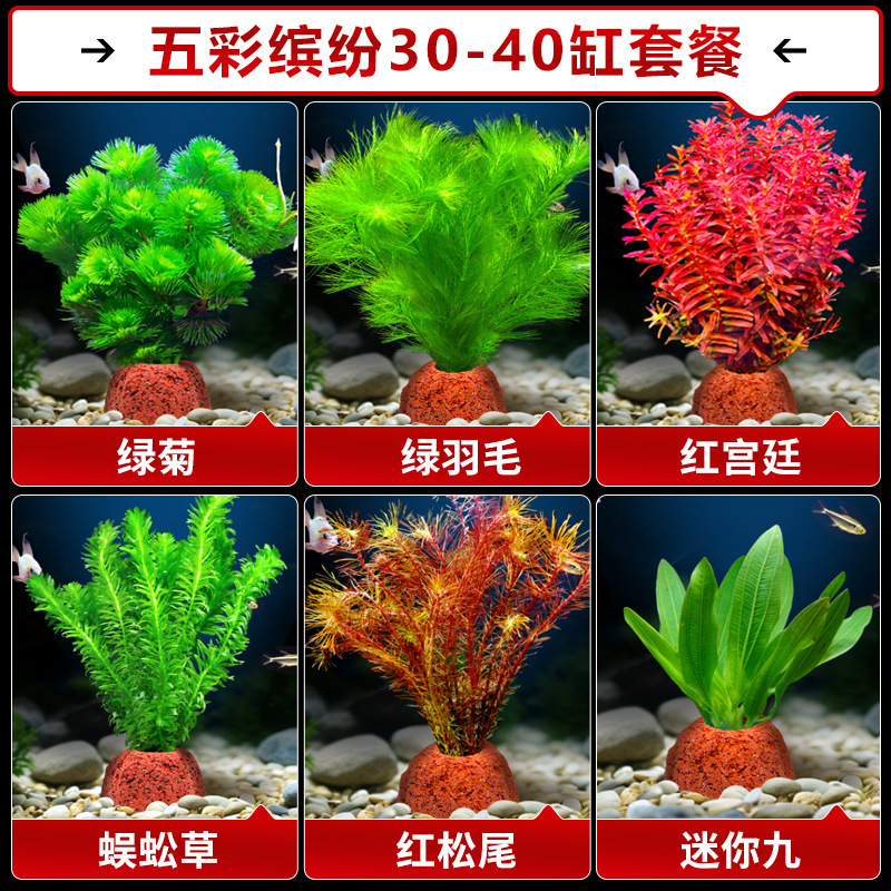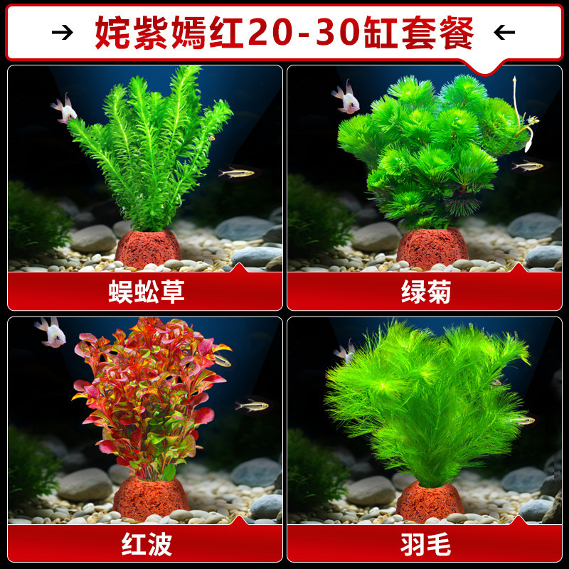 어항 수생 식물 화산 돌 조경 수경 음수 지네 잔디 녹색 국화 진짜 잔디 장식품 초보 풀 패키지