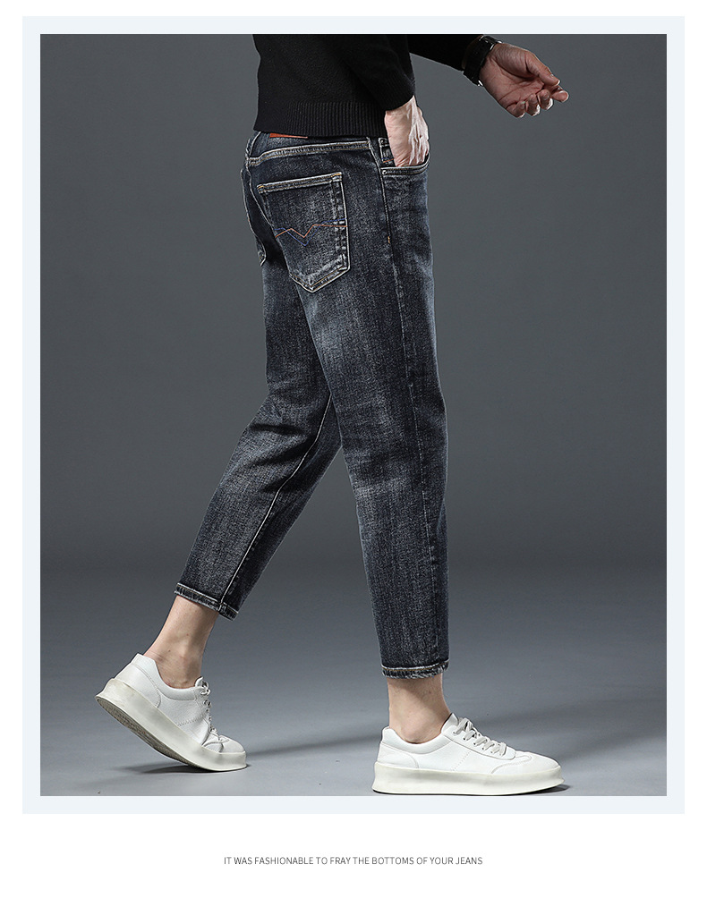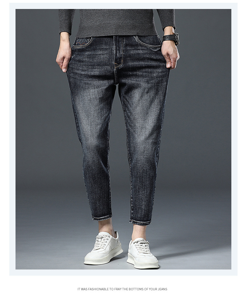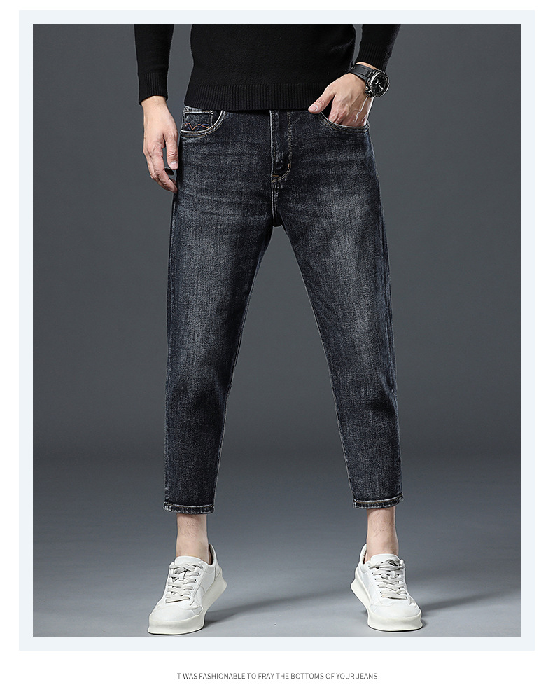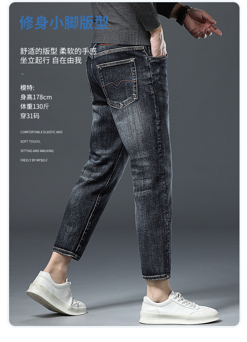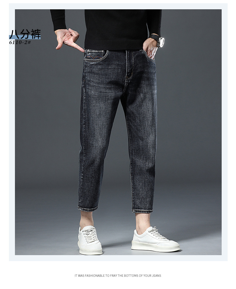 6110 # 시티 리 남자 봄과 가을 작은 8/9 슬림 청바지 간단한 캐주얼 올 매치