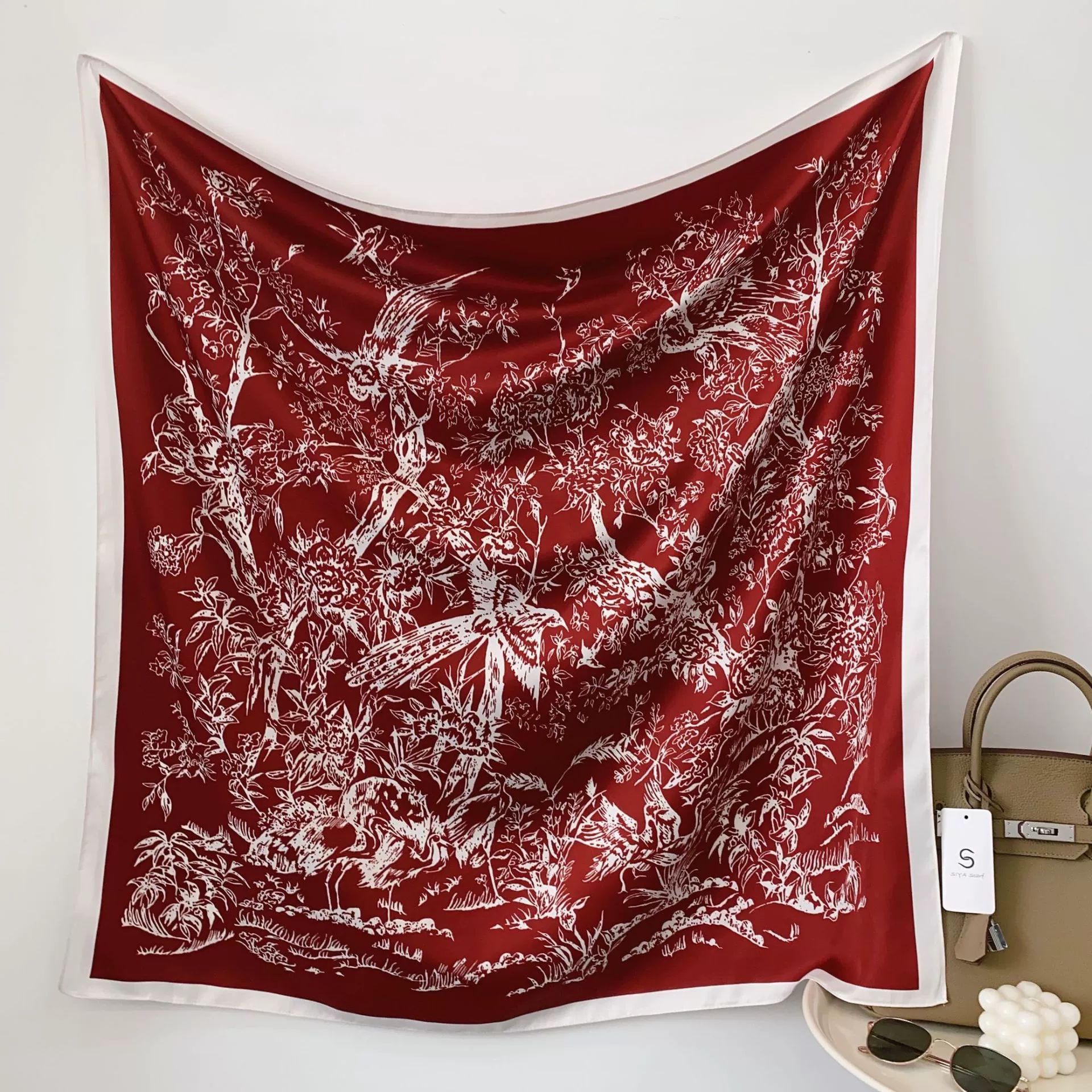 패션 화려한 인쇄 실크 스카프 여성의 그물 붉은 바람 색상 부드러운 모조 실크 큰 사각형 스카프 90 좋은 목도리 도매