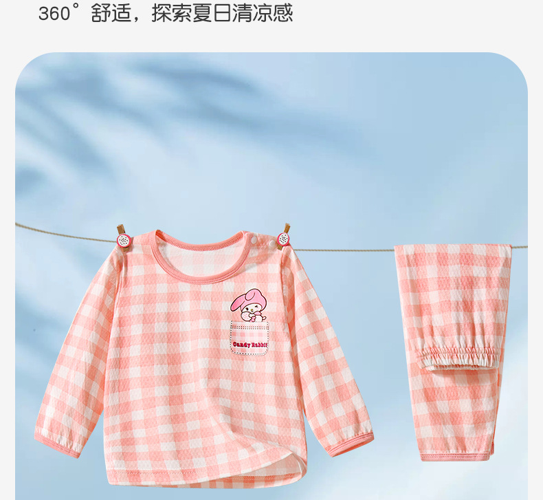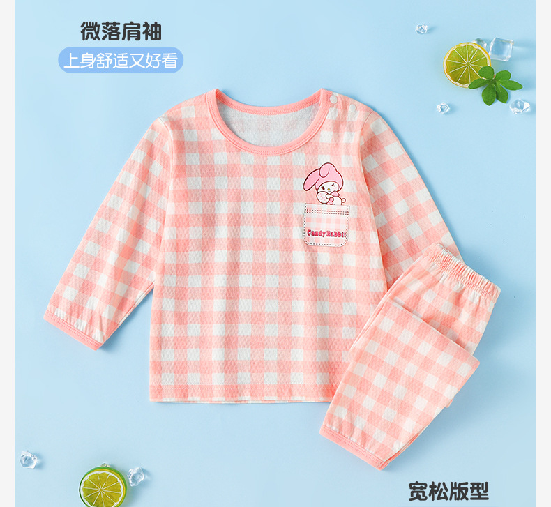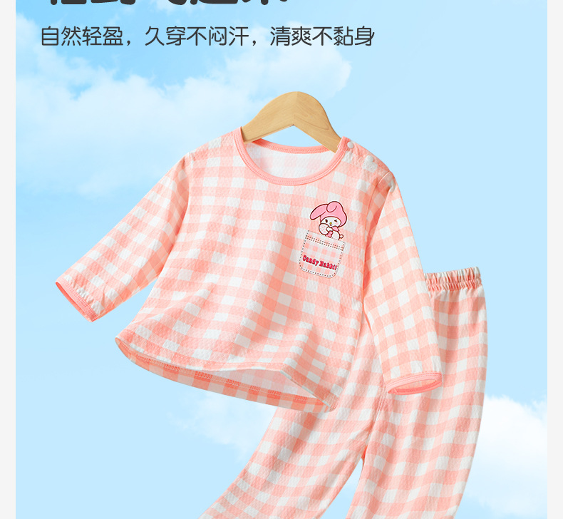어린 이용 여름 순면 세트 아기의 여름 긴 소매 면 홈 옷 소년과 소녀 잠옷을 위한 느슨한 에어컨 옷 얇은스토어 가기