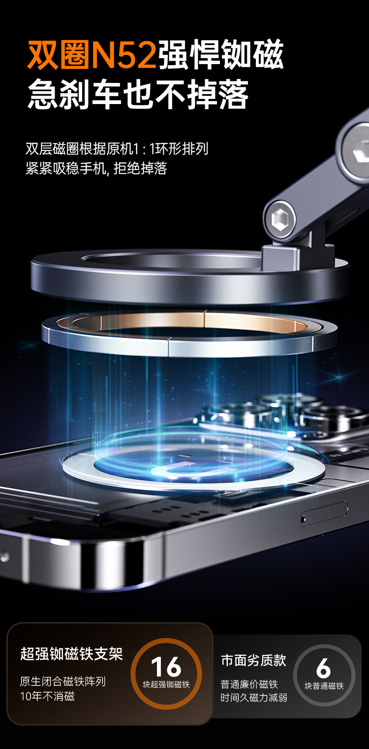 BONERUY 자동차 내비게이션 마그네틱 지원 프레임 알루미늄 합금 자동차 휴대 전화 브래킷 흔들림 방지 360 회전 브래킷