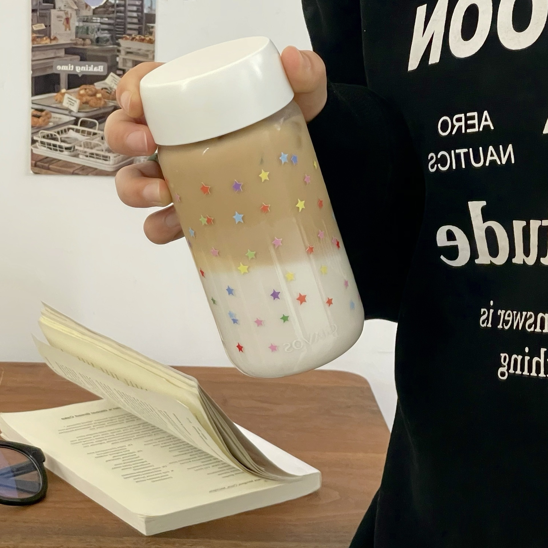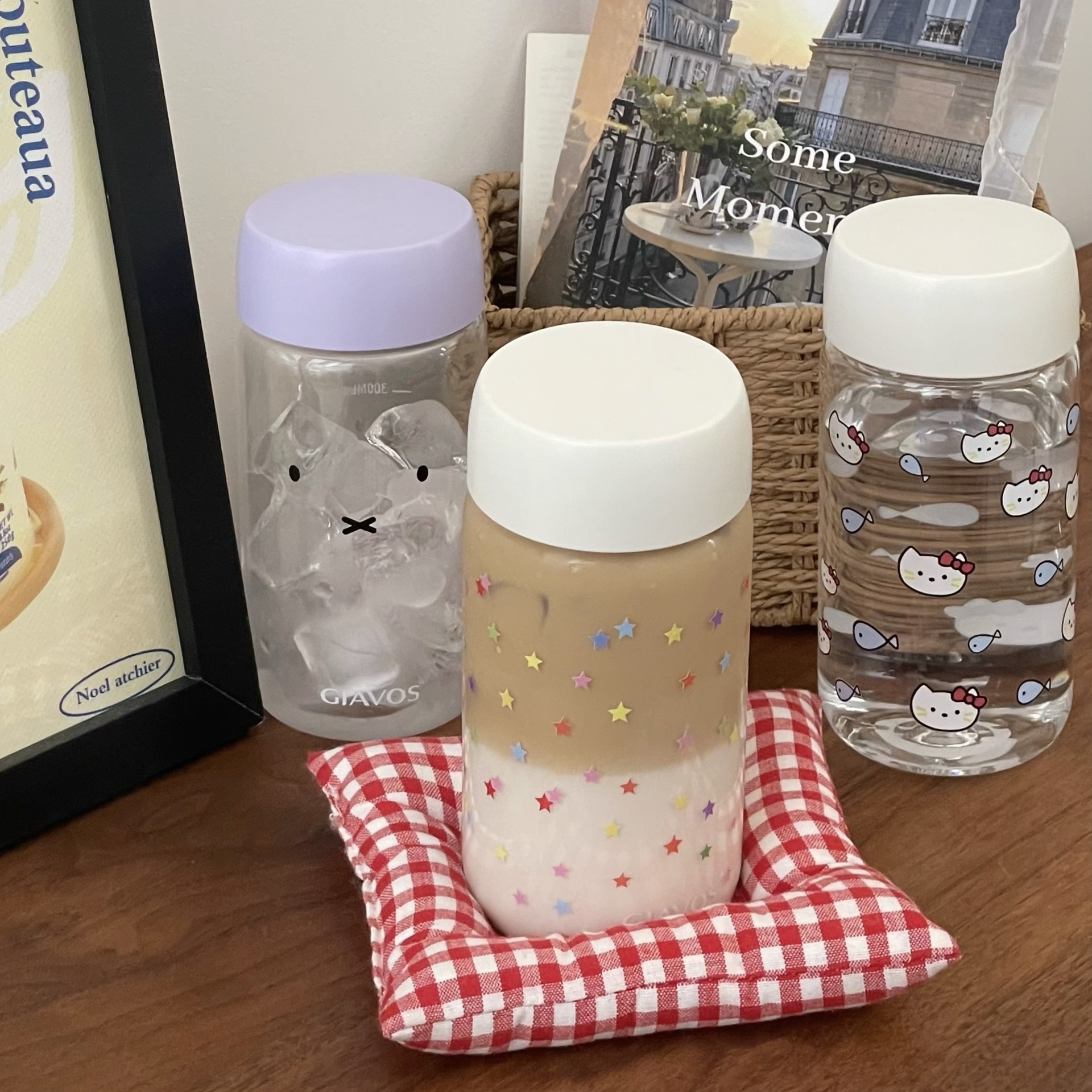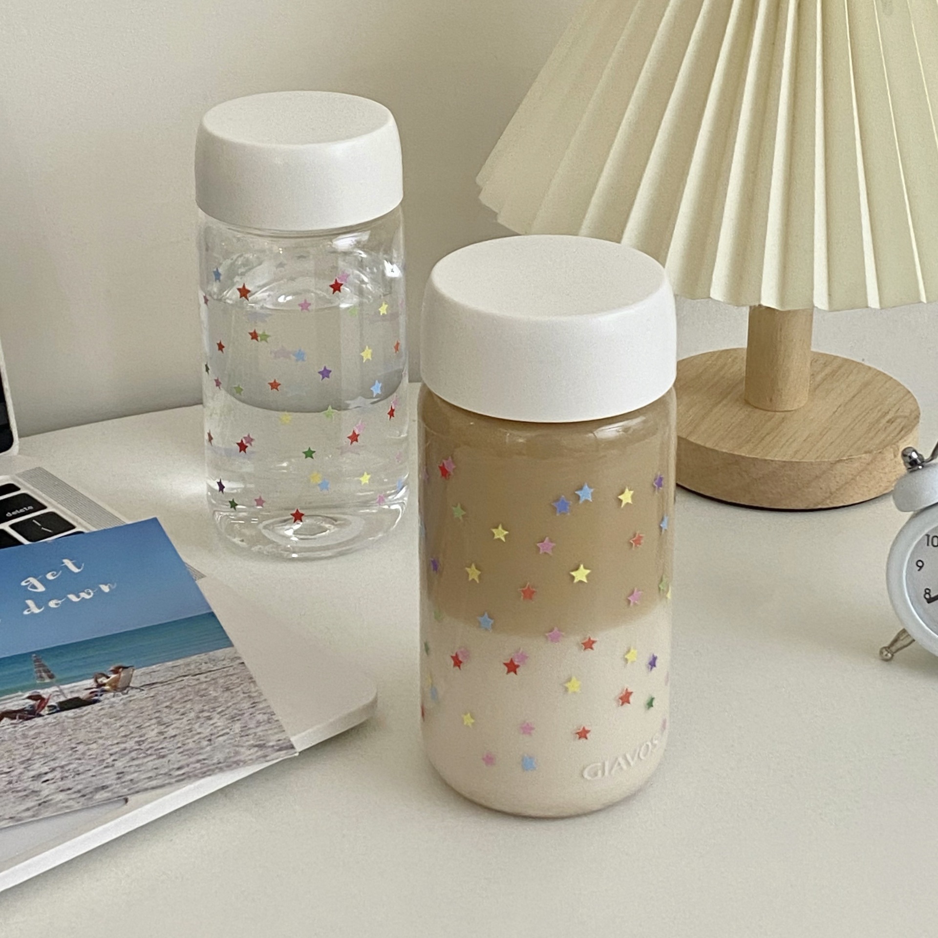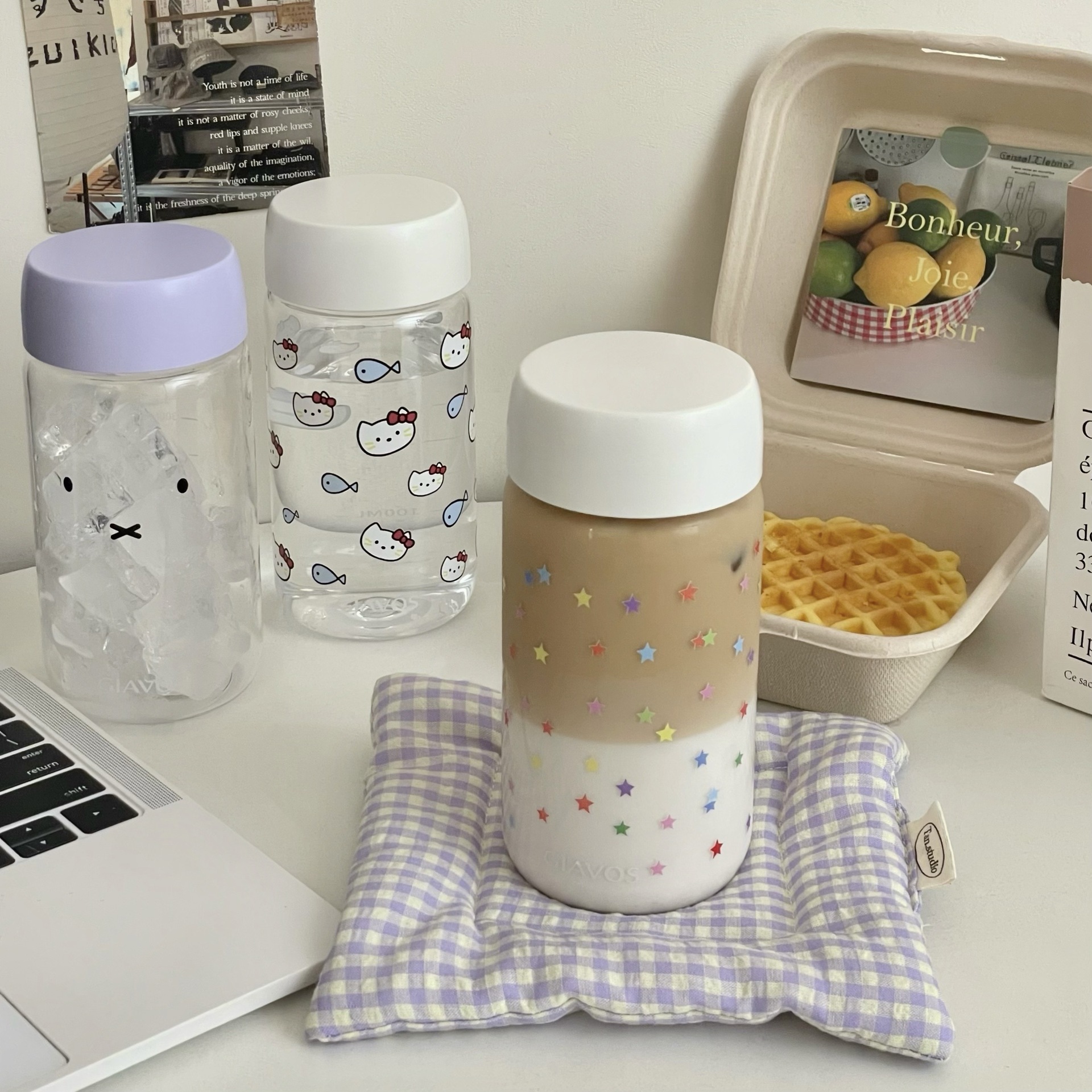 Ins 작은 신선한 플라스틱 컵 높은 온도 저항하는 핸드 헬드 컵 높은 색 가치 물 컵 휴대용 투명 컵 우유 컵 커피 컵