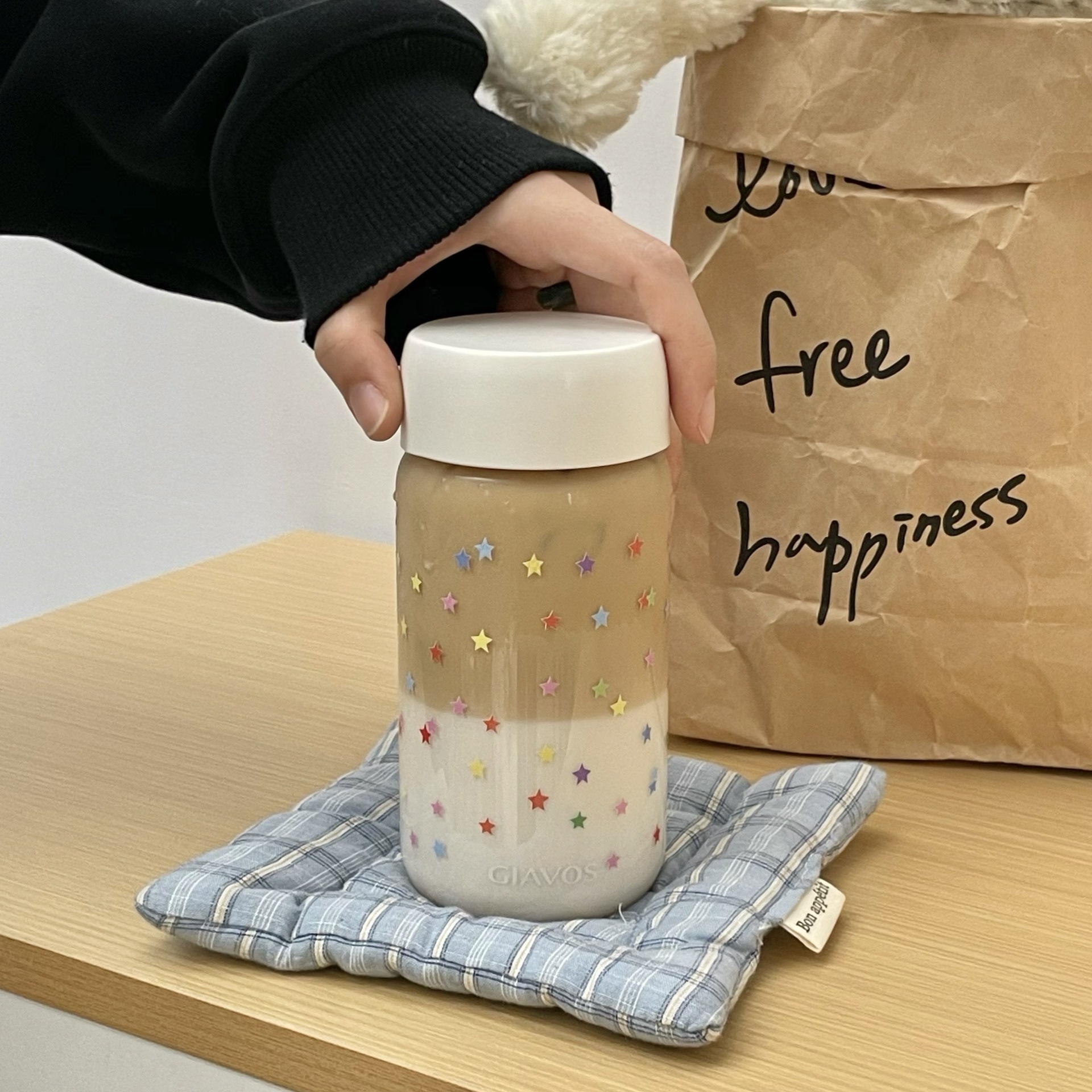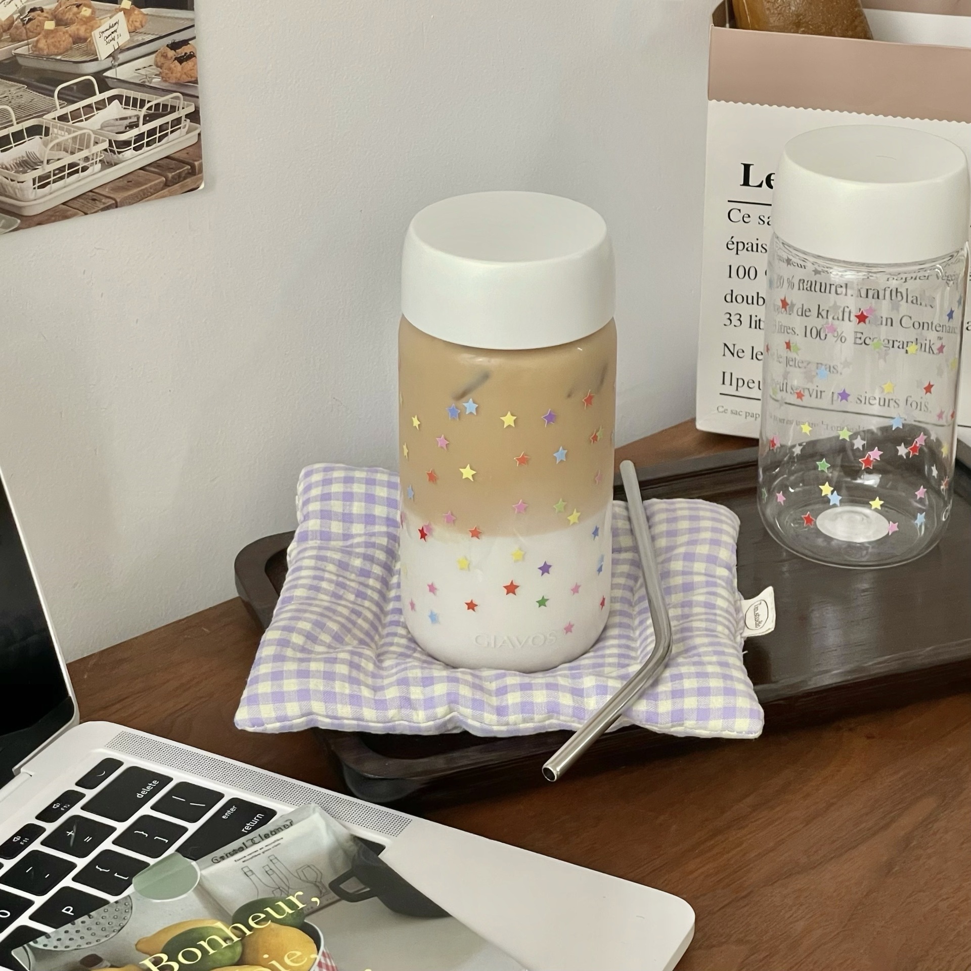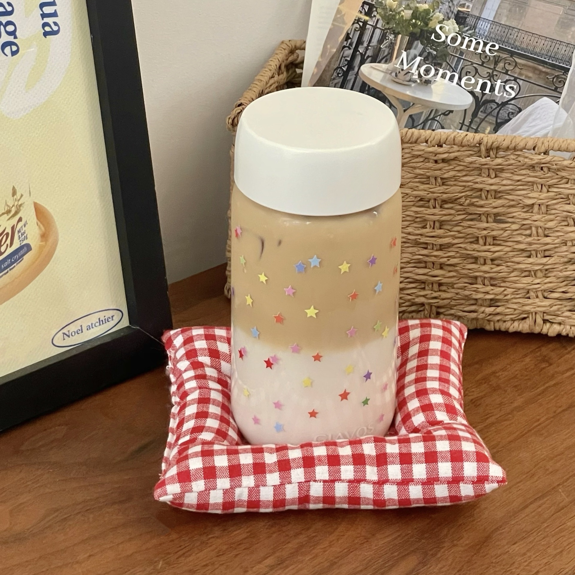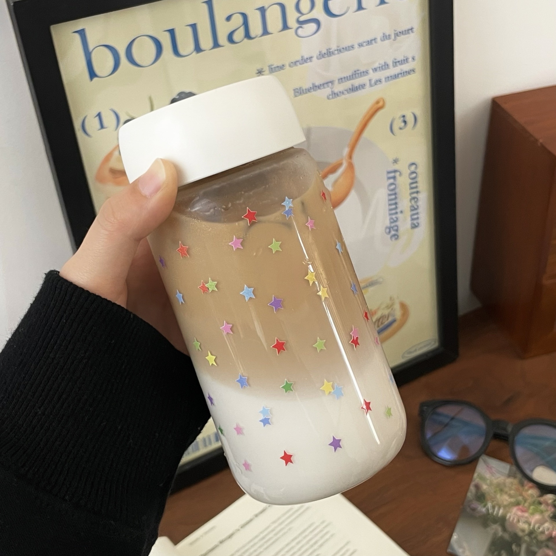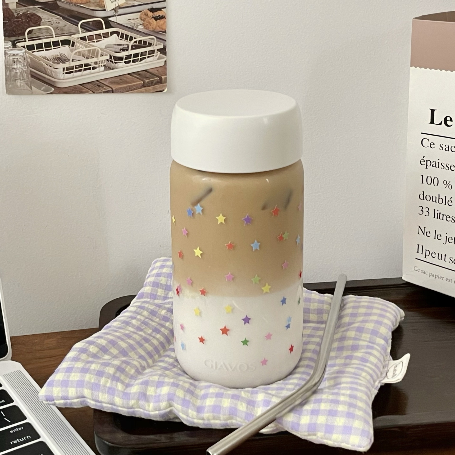 Ins 작은 신선한 플라스틱 컵 높은 온도 저항하는 핸드 헬드 컵 높은 색 가치 물 컵 휴대용 투명 컵 우유 컵 커피 컵