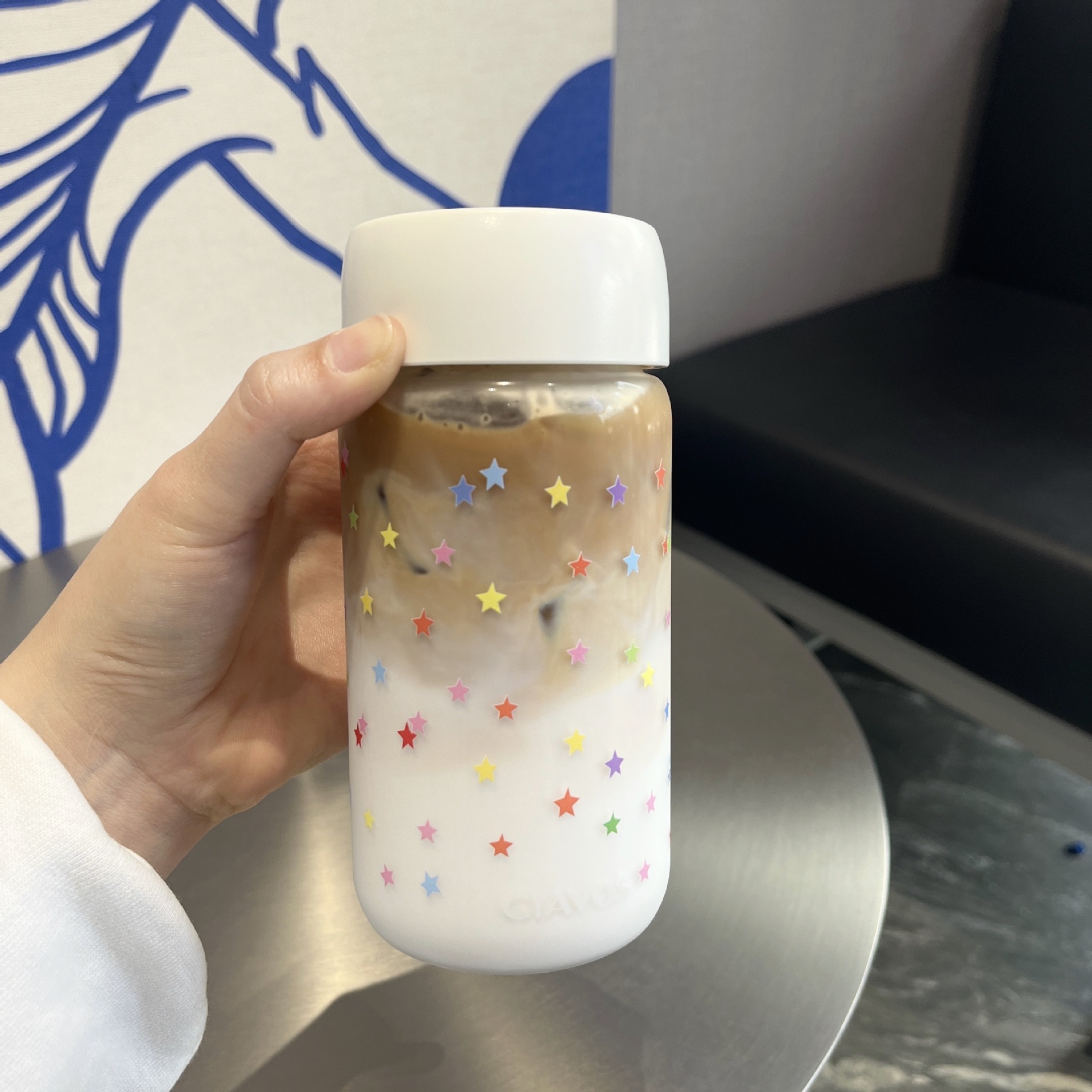 Ins 작은 신선한 플라스틱 컵 높은 온도 저항하는 핸드 헬드 컵 높은 색 가치 물 컵 휴대용 투명 컵 우유 컵 커피 컵스토어 가기