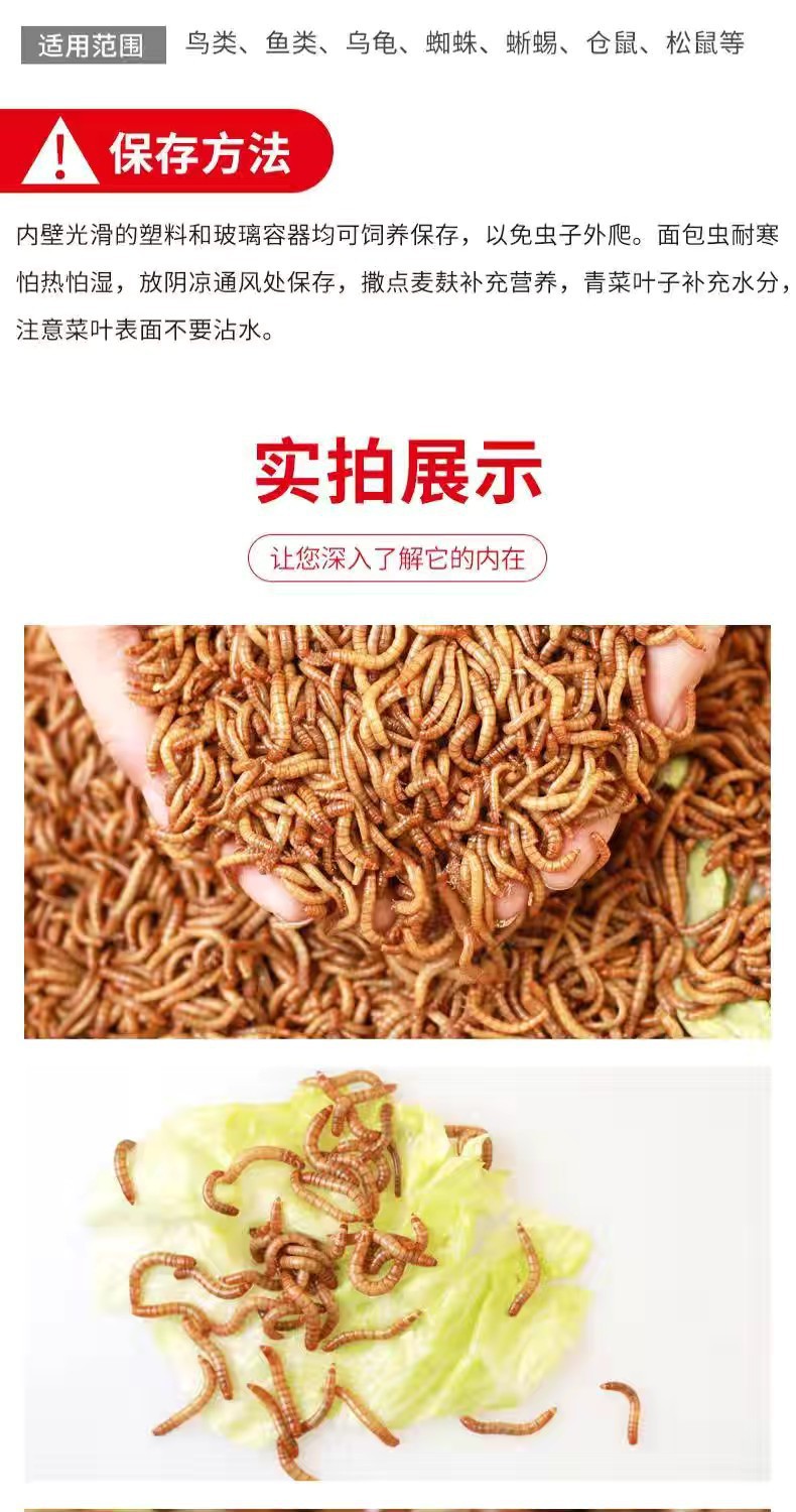 살아있는 빵벌레, 황사나무벌레, 살아있는 아로와나, 거북이, 햄스터, 보리벌레, 꿩새, 참새, 낚시용 유충