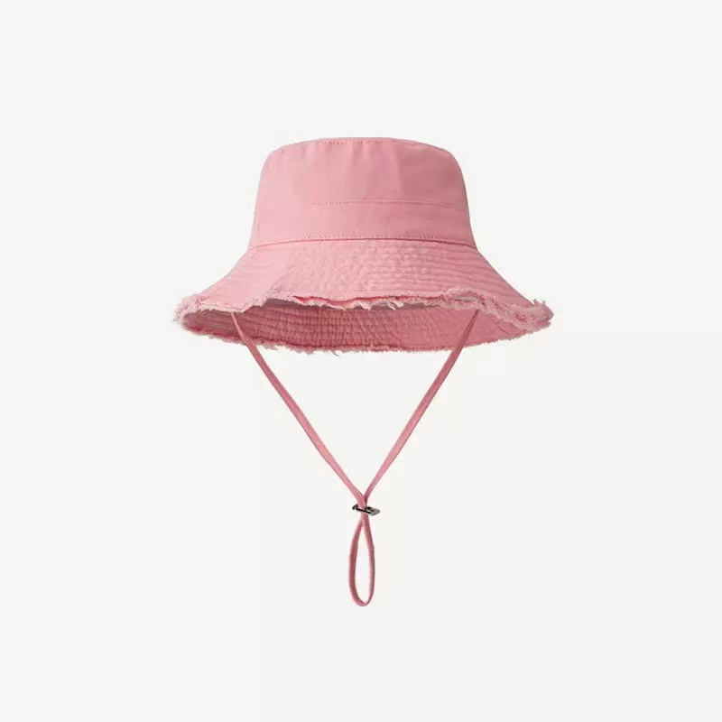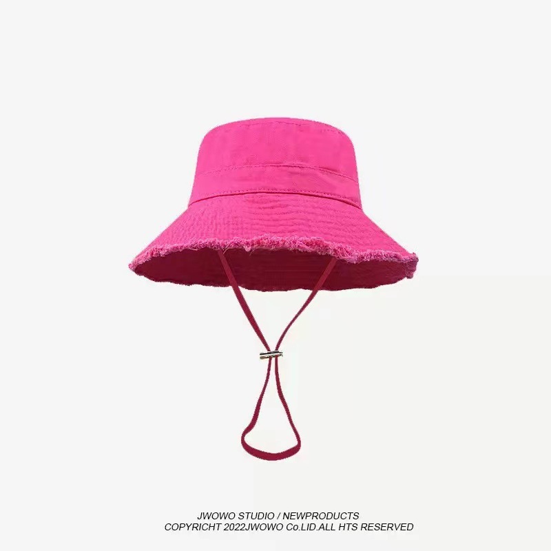 한국어 버전 ins raw edge letter 대형 챙 어부 모자 여성 여름 양산 끈 야외 핑크 등산 태양 보호 모자