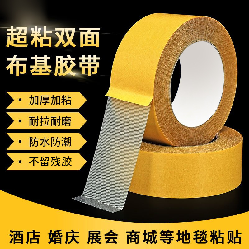 양면 천 기반 테이프 강력한 고점도 흔적없는 전시회 웨딩 고정 카펫 접착제 노란색 그리드 양면 테이프