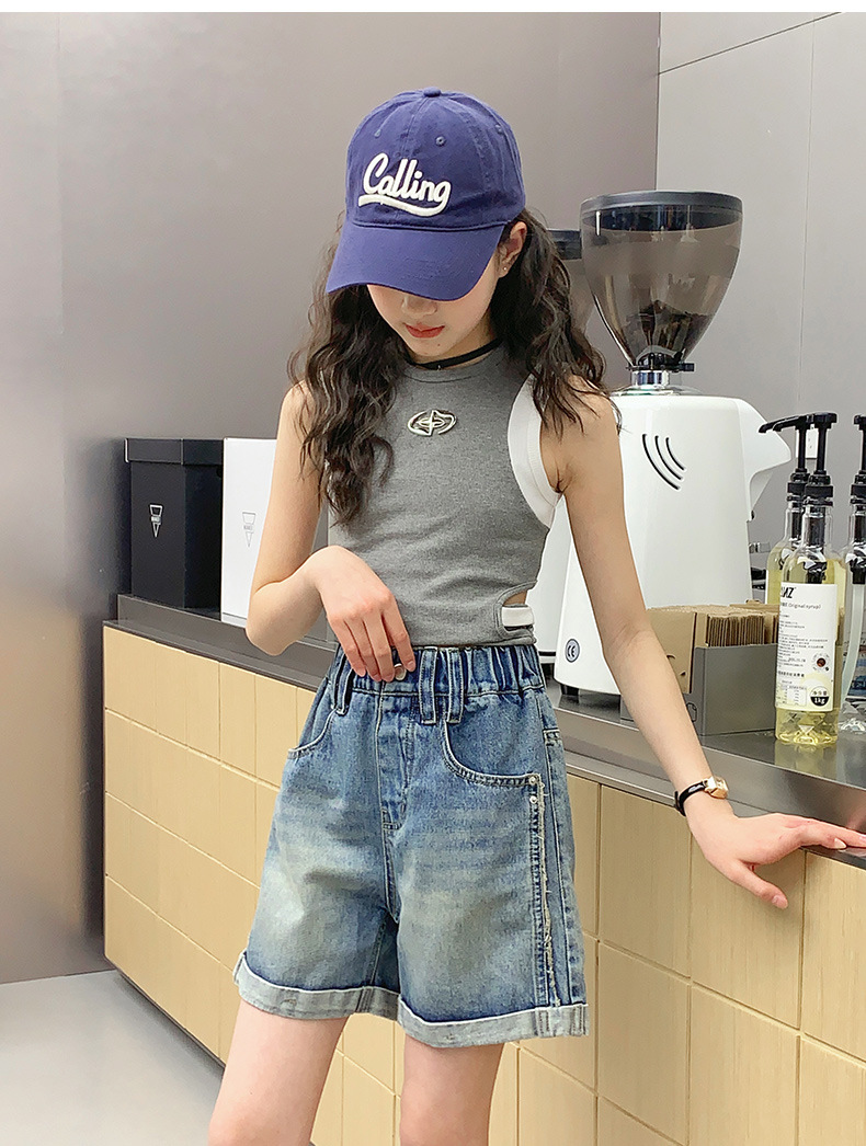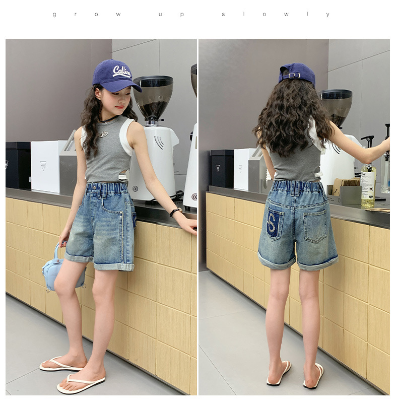 소녀 반바지 여름 얇은 소녀 여름 2025 새로운 어린이 바지 여름 큰 소녀 청바지 뜨거운 바지스토어 가기