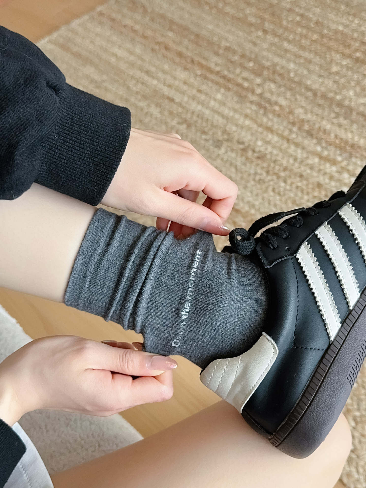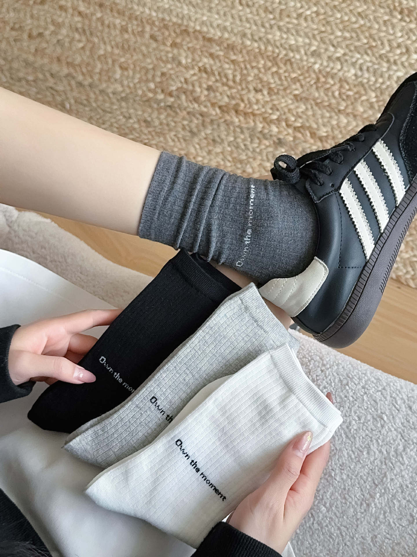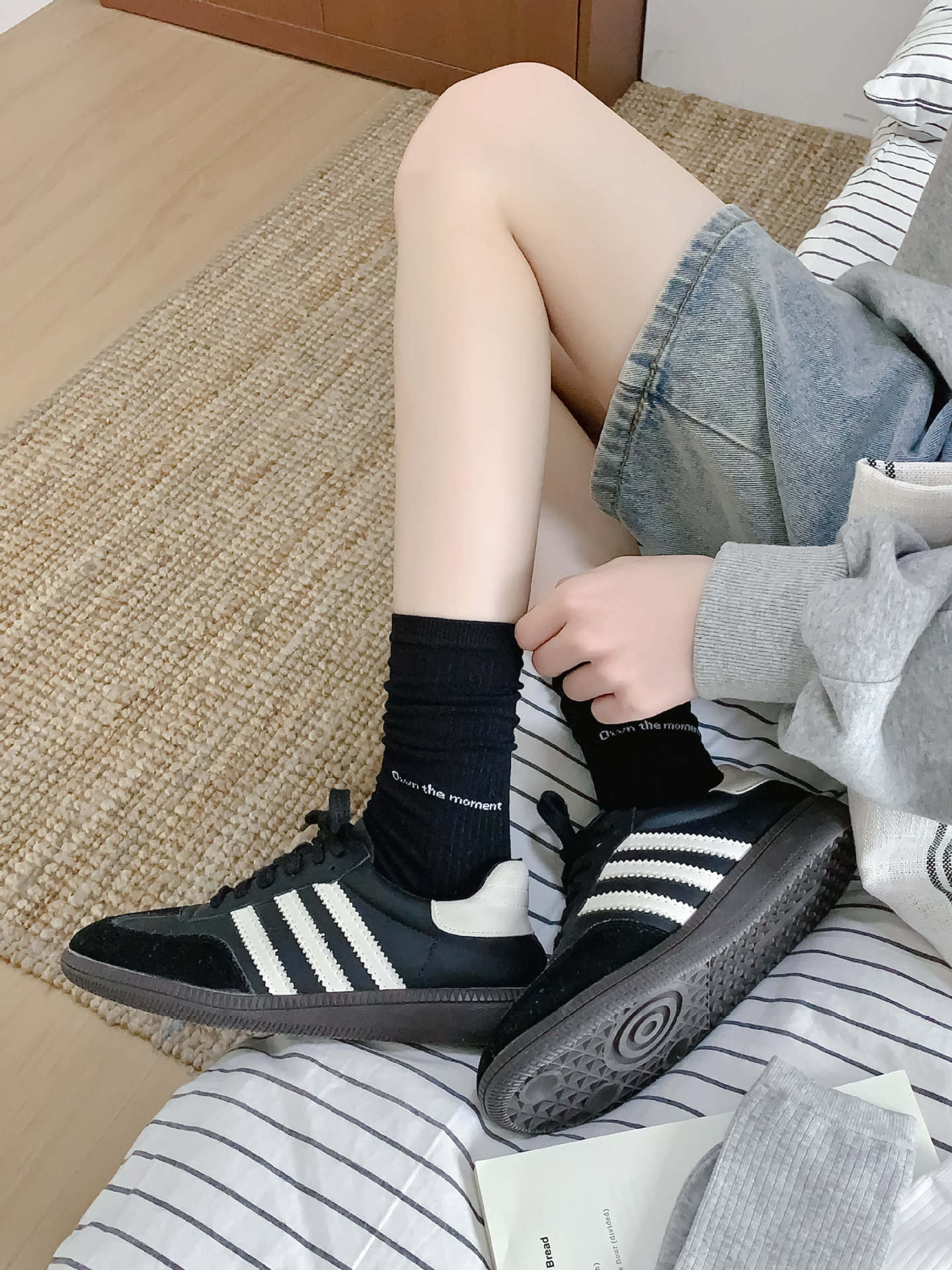 여름은 또한 블로거 바람 편지 커플 튜브 양말 한국 운동화로 간단한 단색을 입을 수 있습니다
