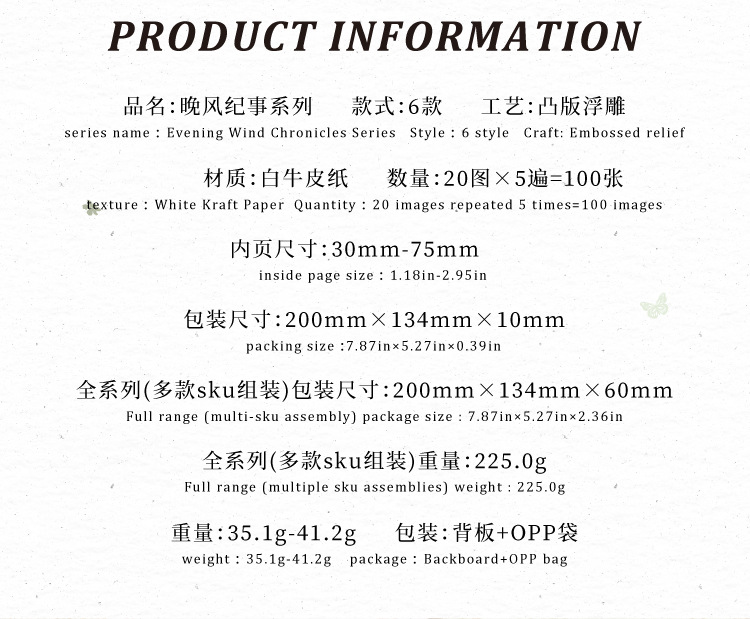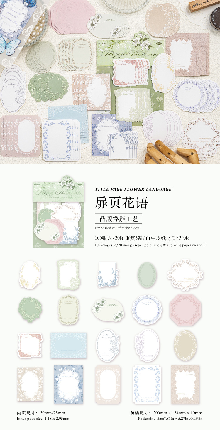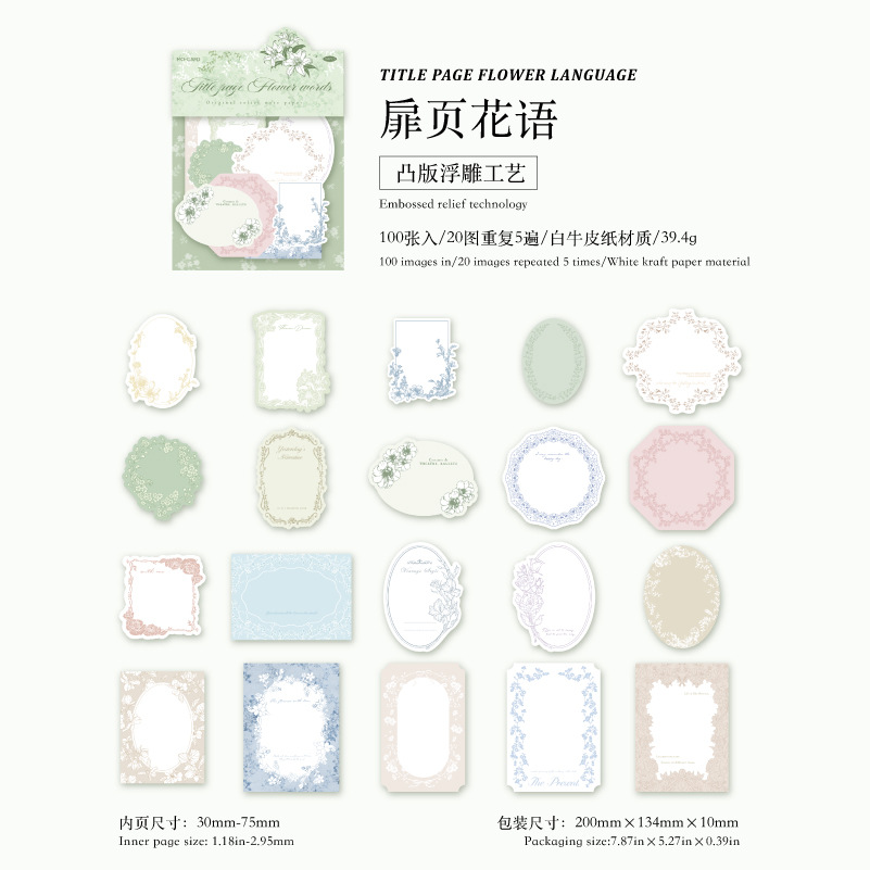 모 잉크 화이트 크래프트 종이 구호 구호 노트 소재 가방-밤 바람 연대기 시리즈 제목 페이지 꽃 언어 등 6 선택 10스토어 가기
