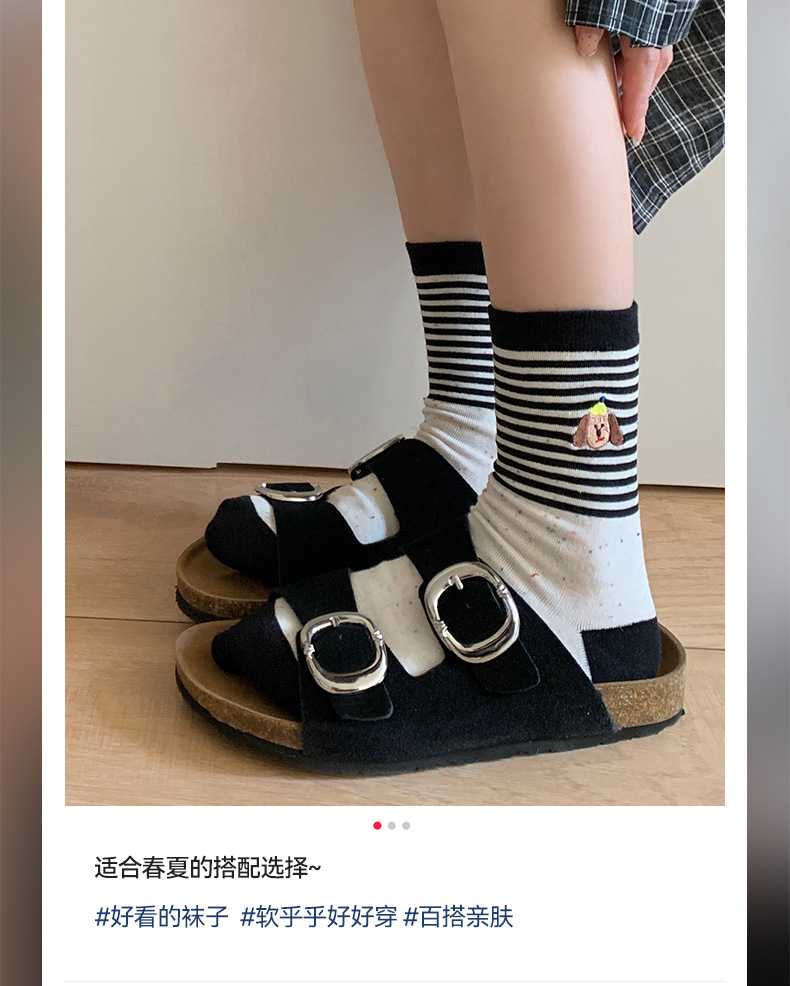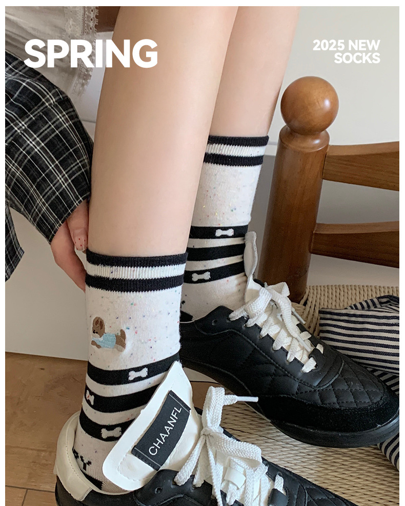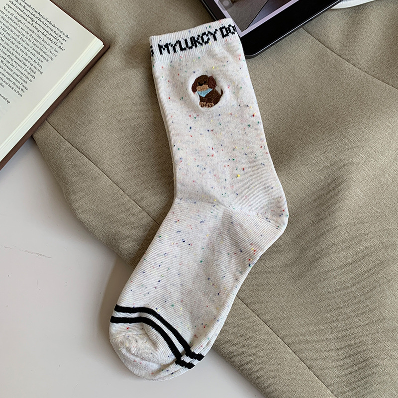 너트 미라 만화 강아지 양말 여성 중간 길이 양말 여름 얇은 Ins 유행 한국 스타일 귀여운 일본 스타일 스타킹