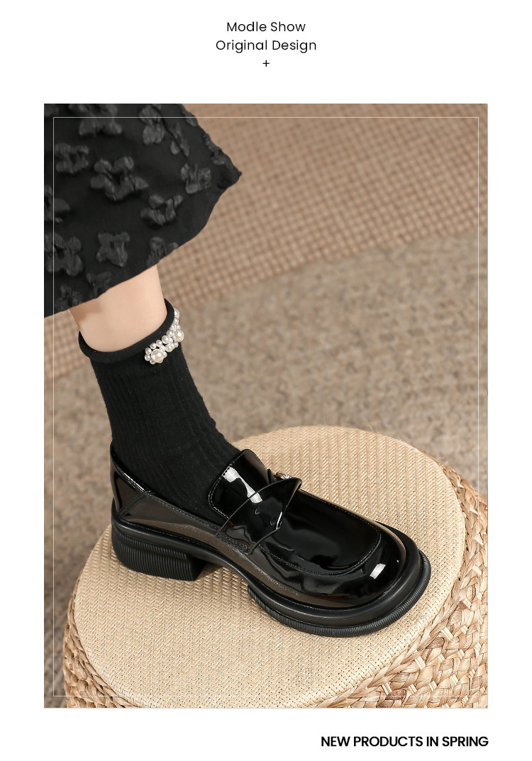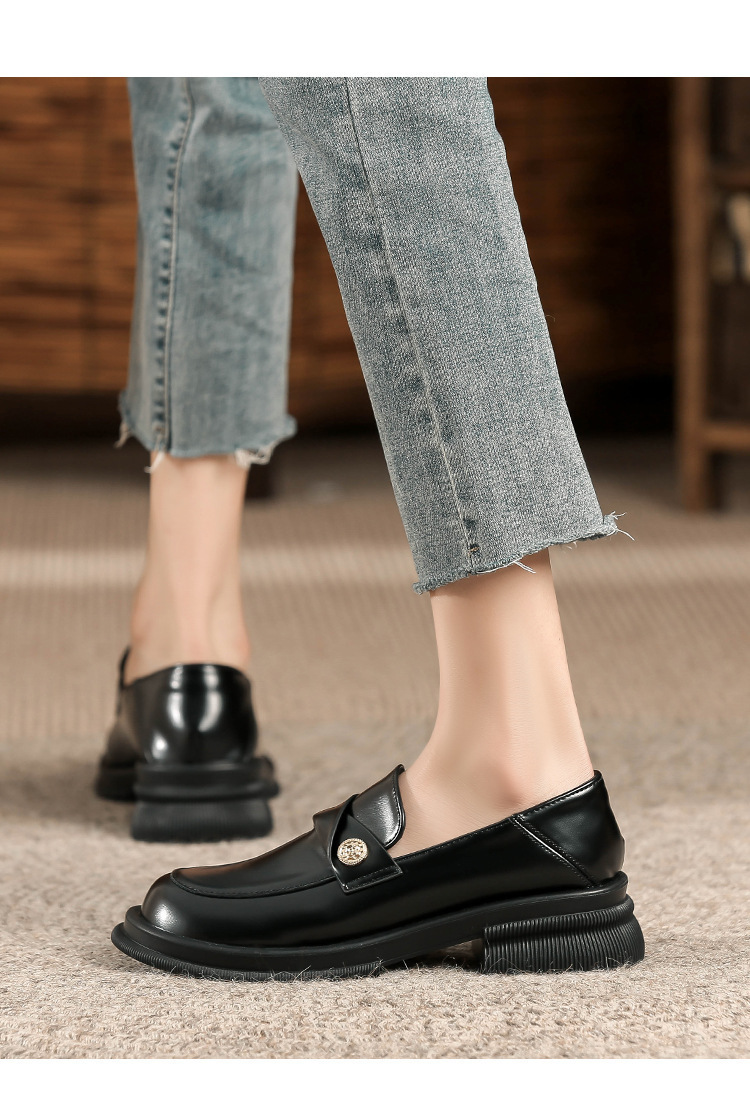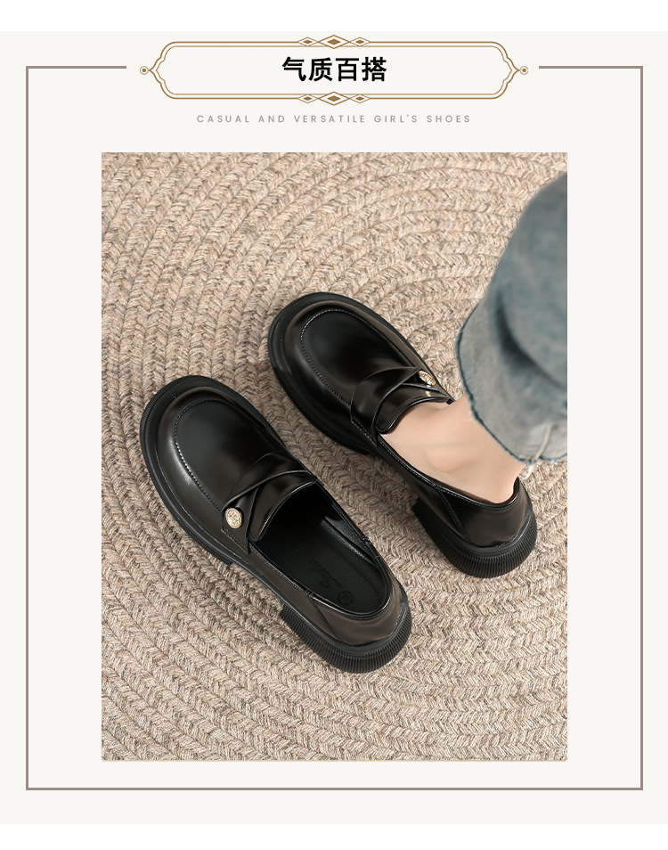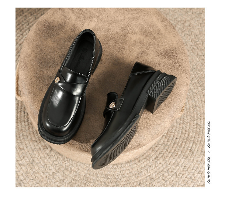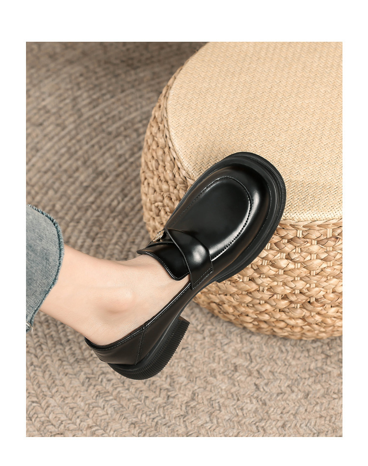 작은 금화 두꺼운 밑창 여성용 로퍼, 영국식 5CM 복고풍 슬립온 작은 가죽 신발, 게으른 신발스토어 가기