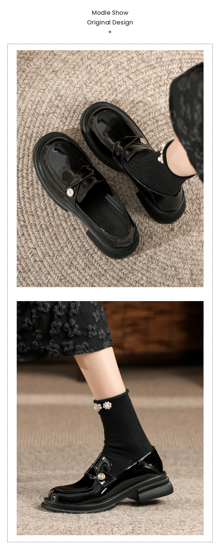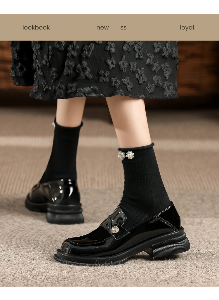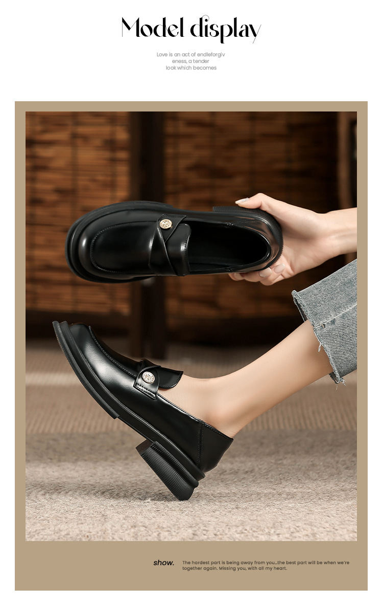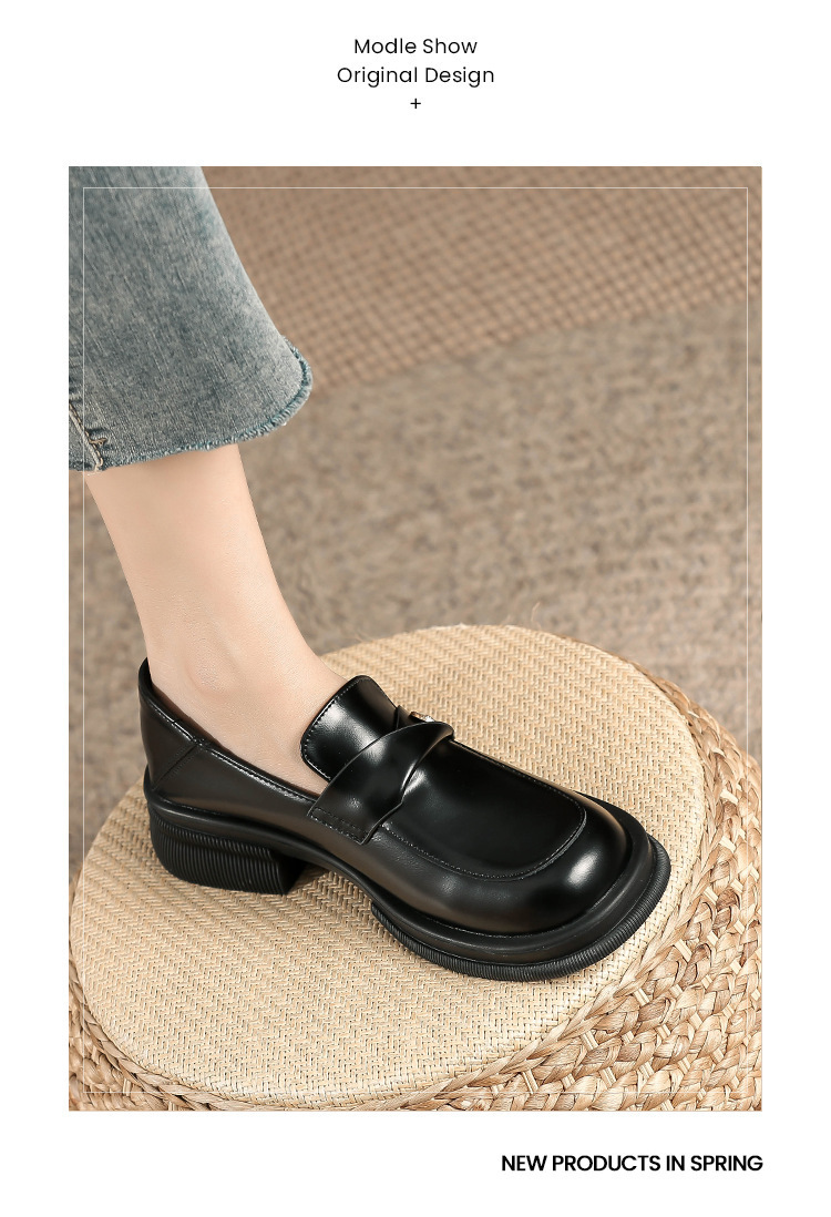 작은 금화 두꺼운 밑창 여성용 로퍼, 영국식 5CM 복고풍 슬립온 작은 가죽 신발, 게으른 신발스토어 가기