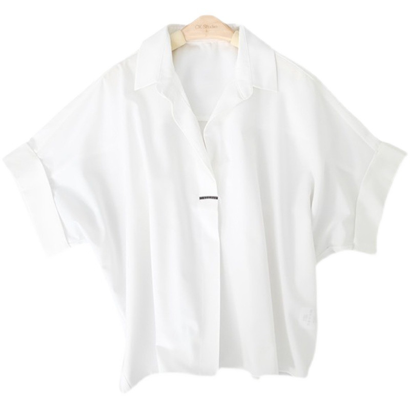 통통녀 플러스 사이즈 여자 150.00kg 프랑스 V 넥 반팔 셔츠 여자 여름 2025 새로운 하이 엔드 슬림 셔츠