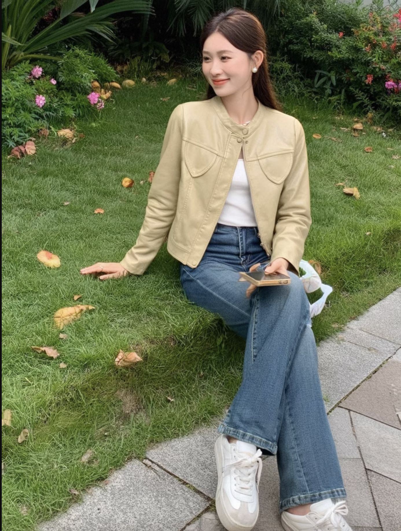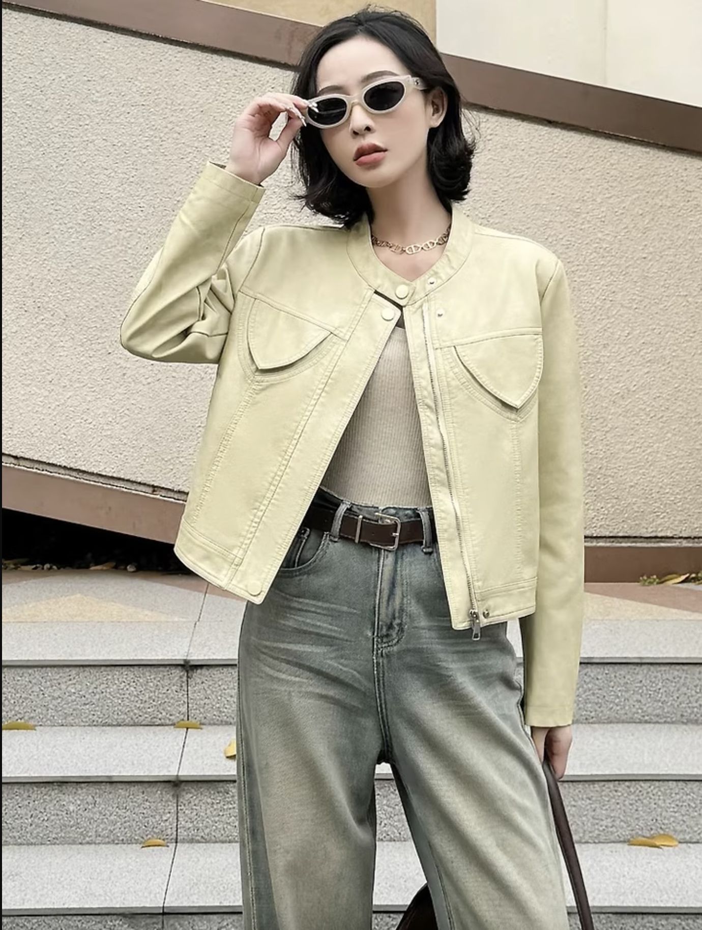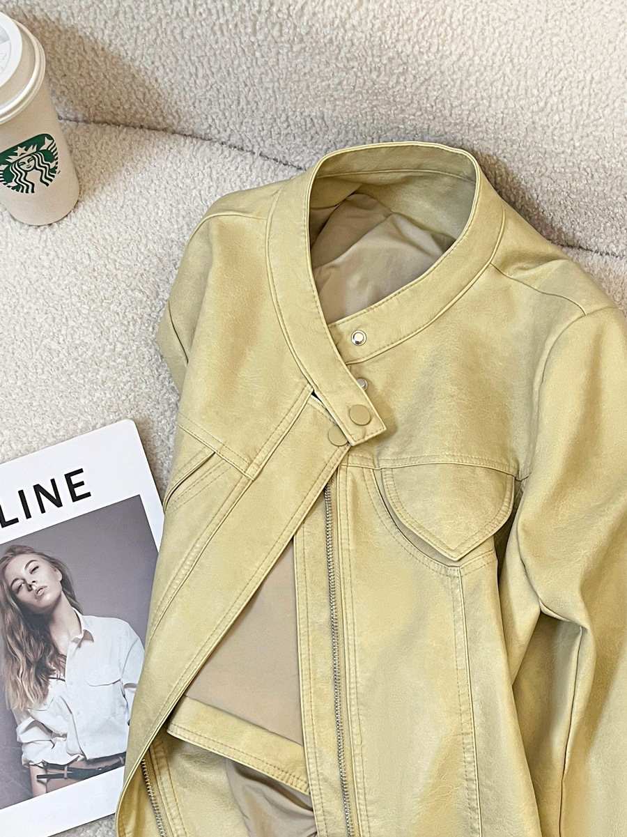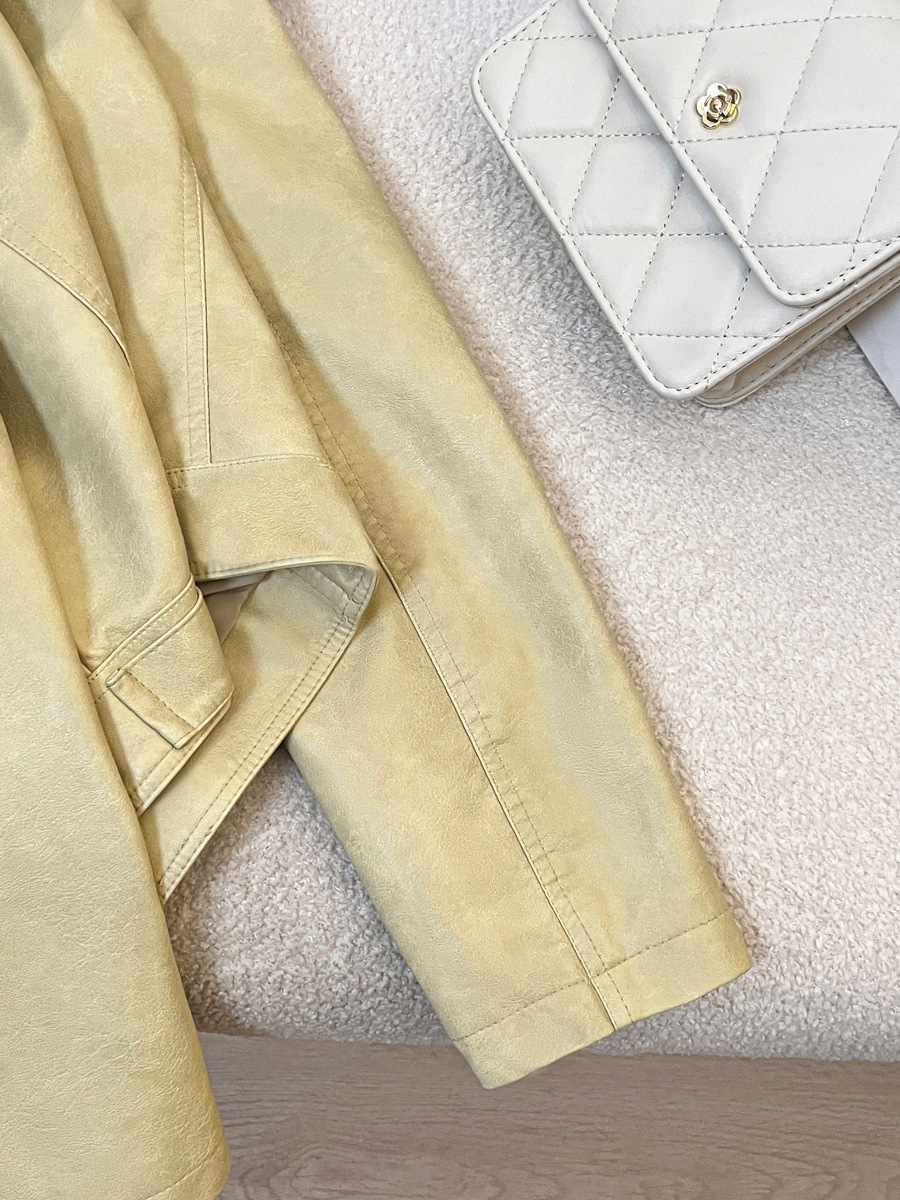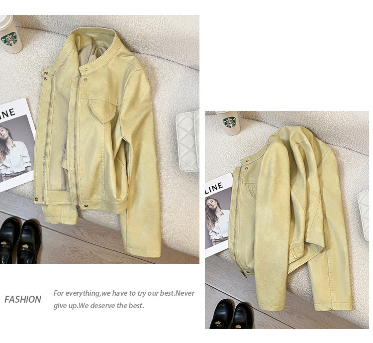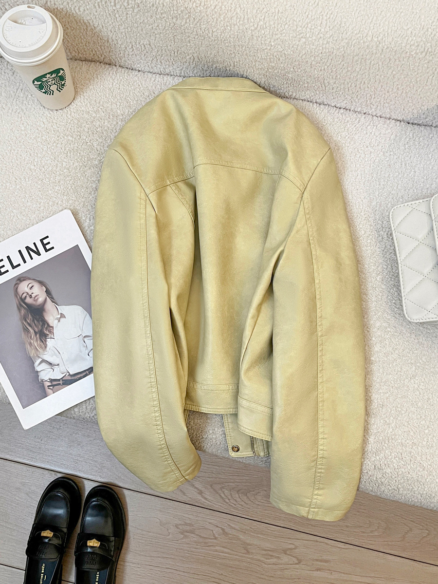 올해 인기있는 노란색 미국 복고풍 가죽 코트 여성의 2025 봄 새로운 패션 외국 스타일 짧은 재킷 탑스토어 가기