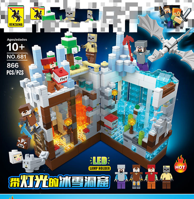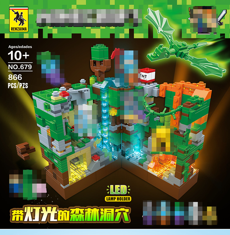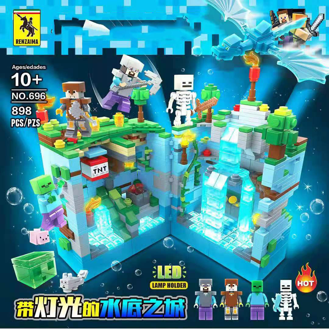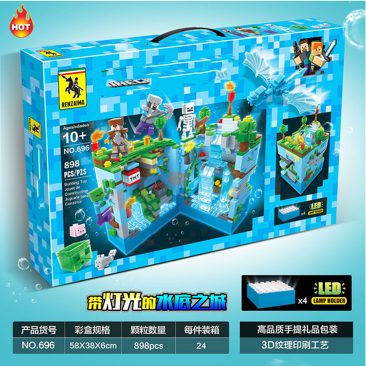 696 어린이 세계 건물 블록 조명 수중 도시 소년 건물 블록 조립 장난감 교차 경계