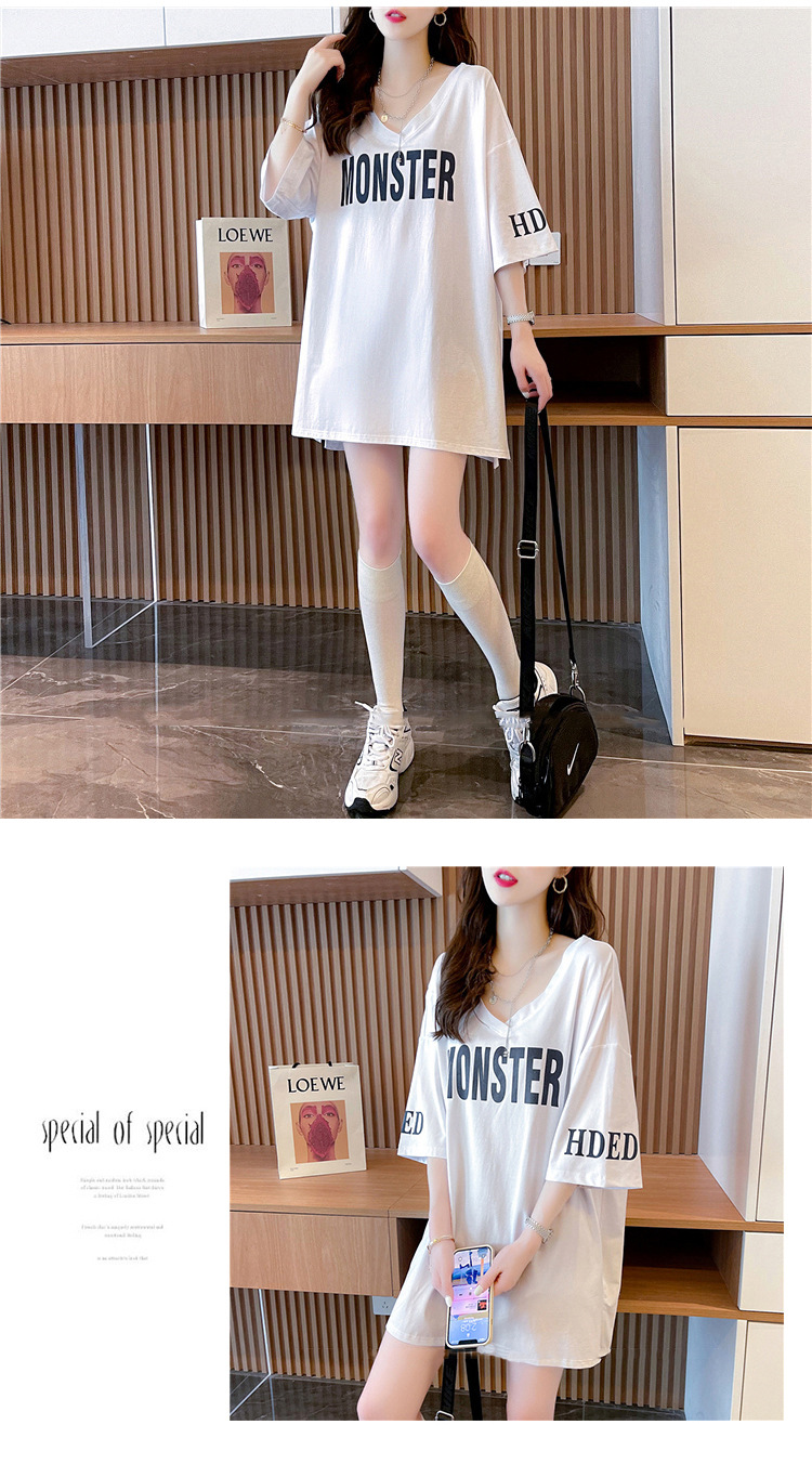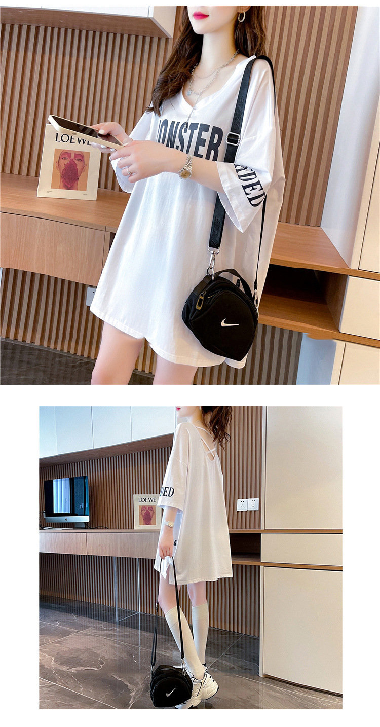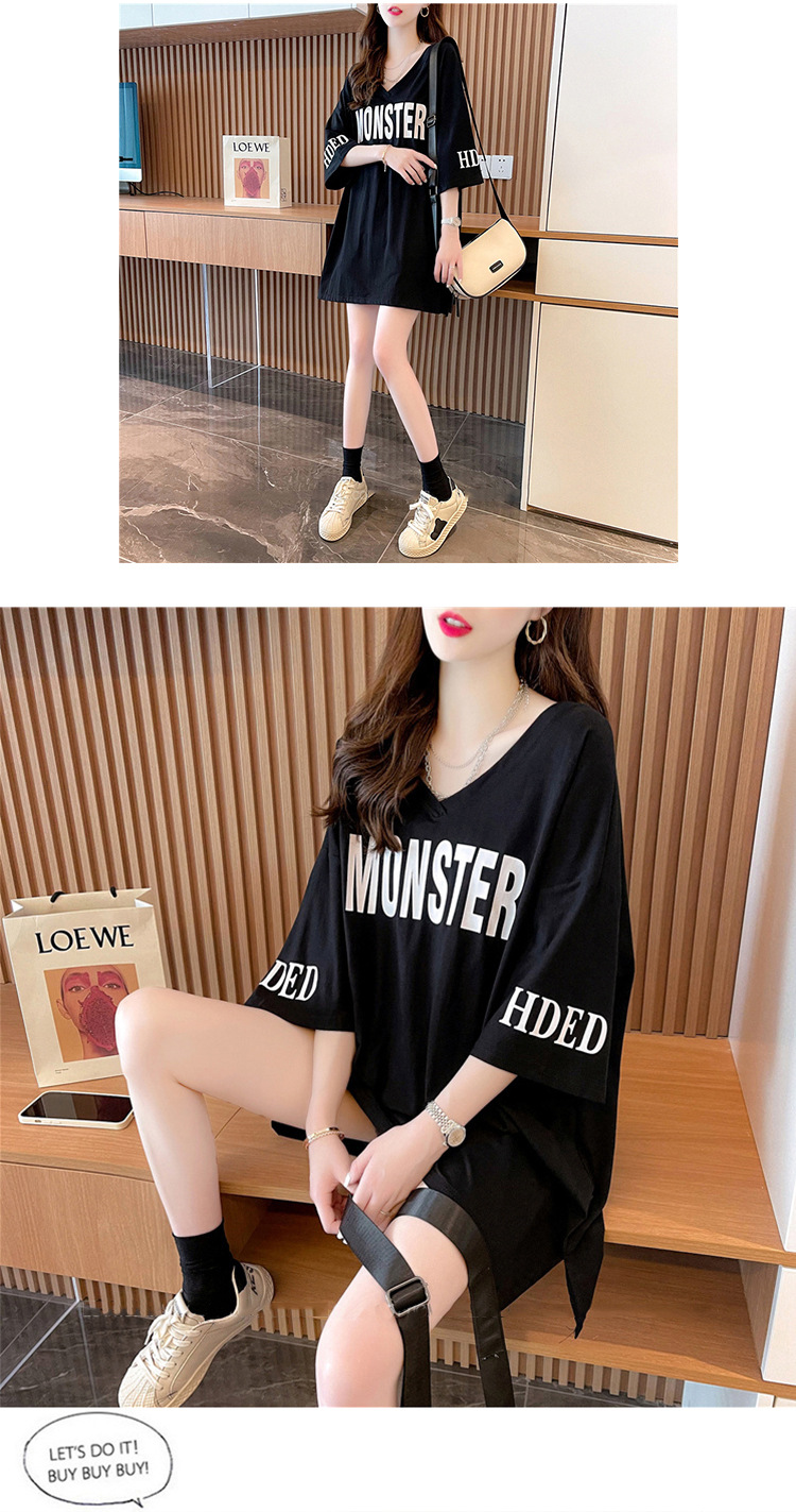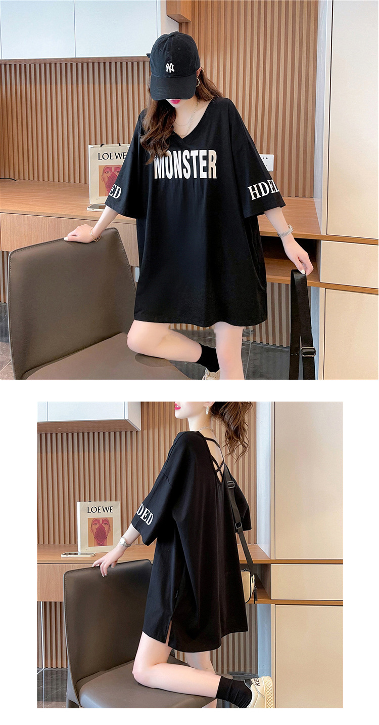 백리스 V 넥 중장 반팔 티셔츠 여자 여름 새 한국식 느슨한 올매치 플러스 사이즈 통통녀 디자인 탑