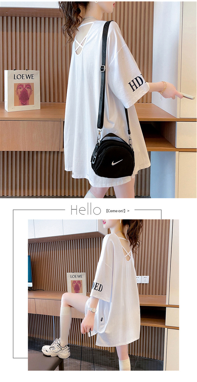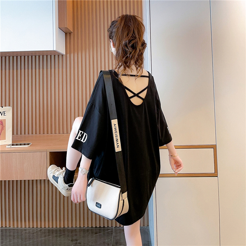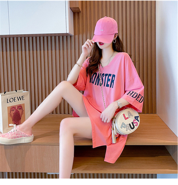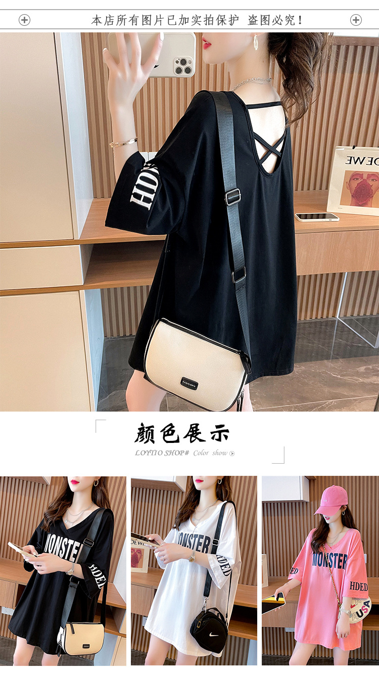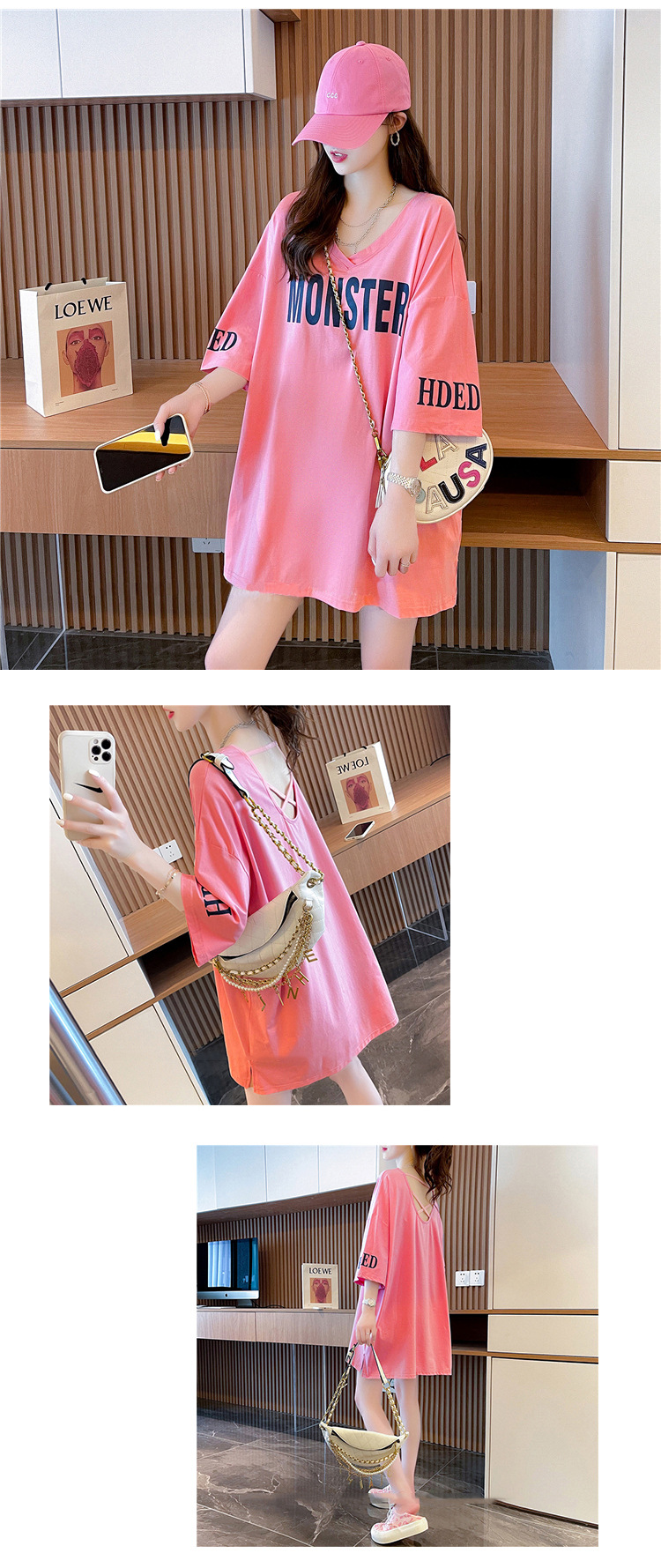 백리스 V 넥 중장 반팔 티셔츠 여자 여름 새 한국식 느슨한 올매치 플러스 사이즈 통통녀 디자인 탑