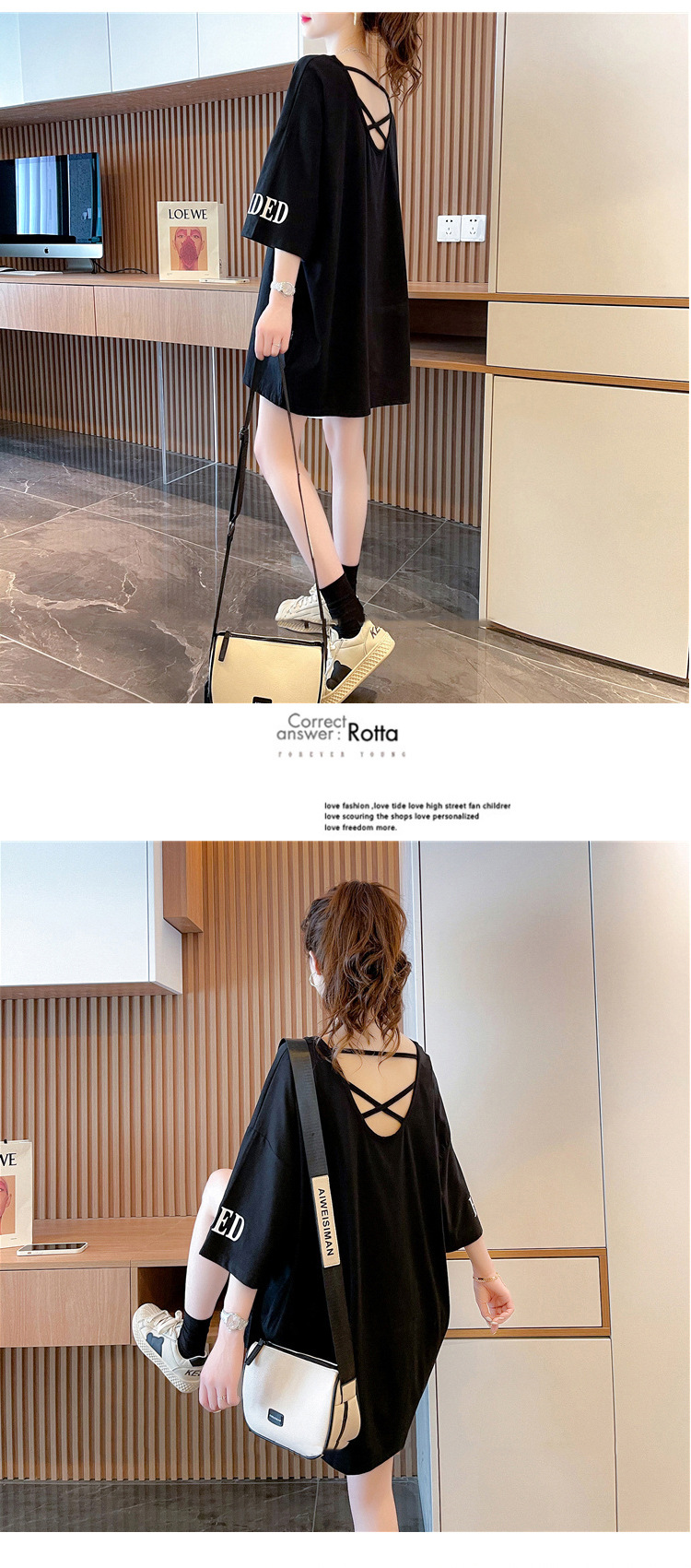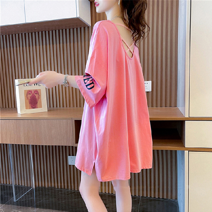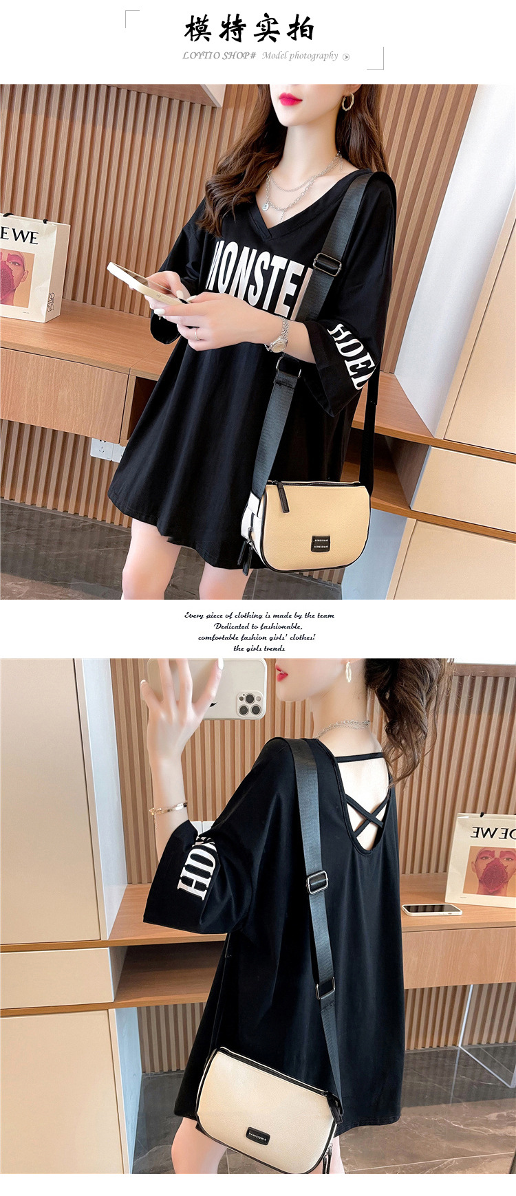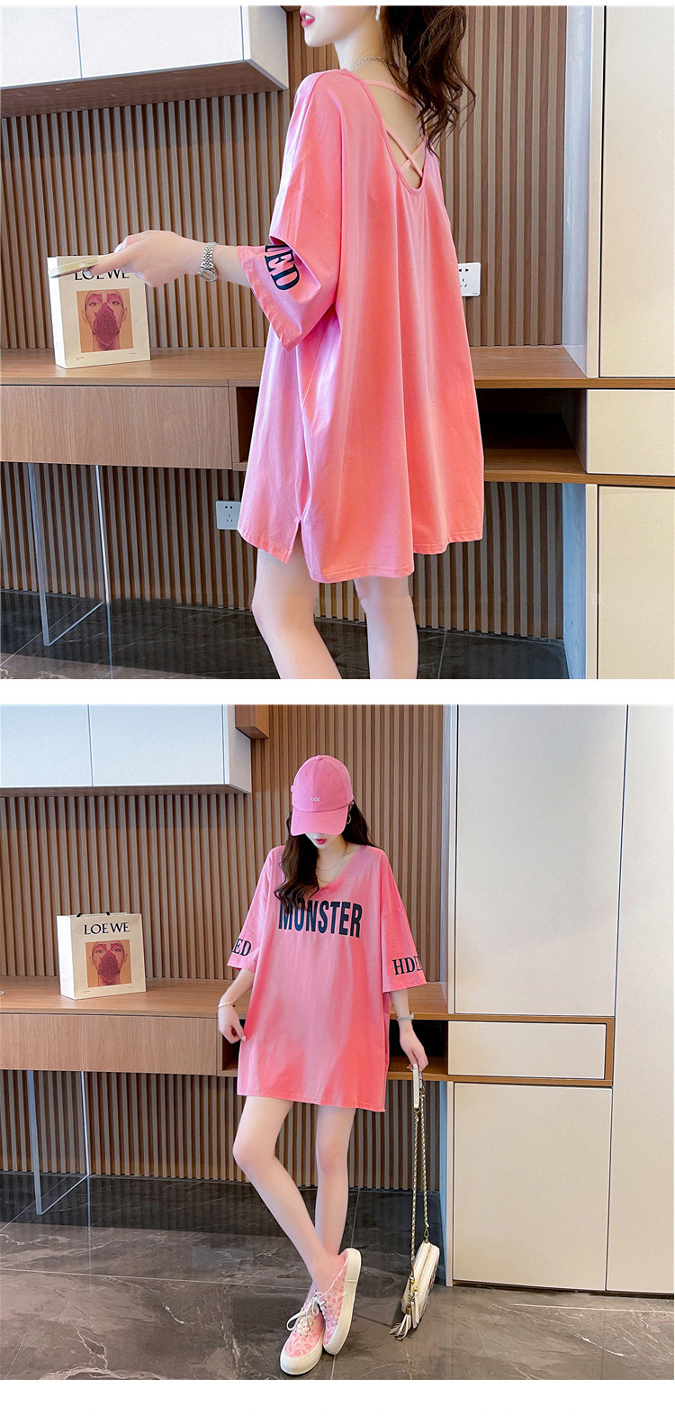 백리스 V 넥 중장 반팔 티셔츠 여자 여름 새 한국식 느슨한 올매치 플러스 사이즈 통통녀 디자인 탑