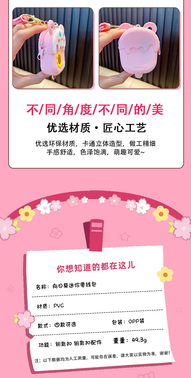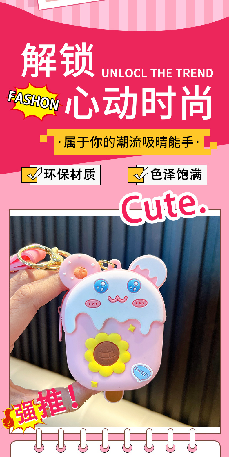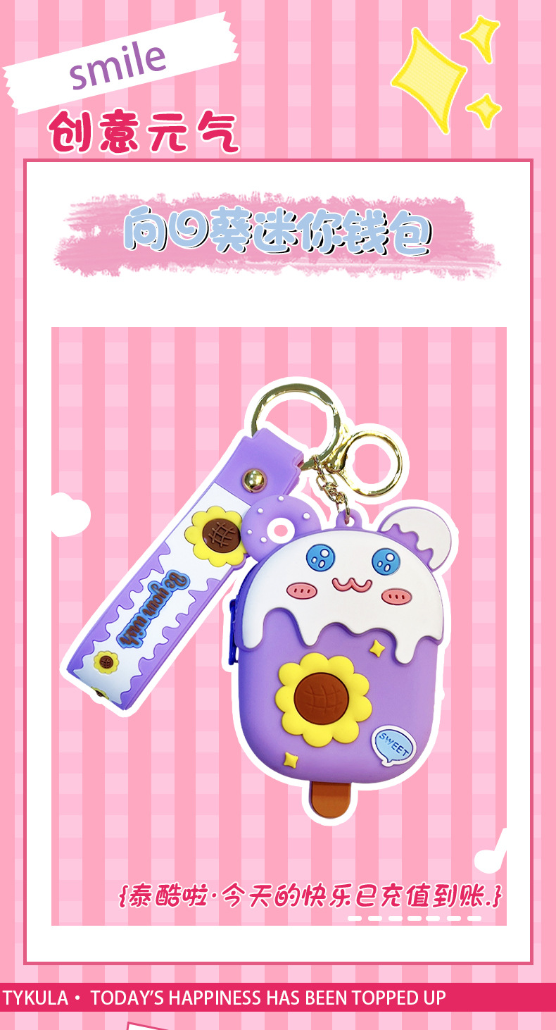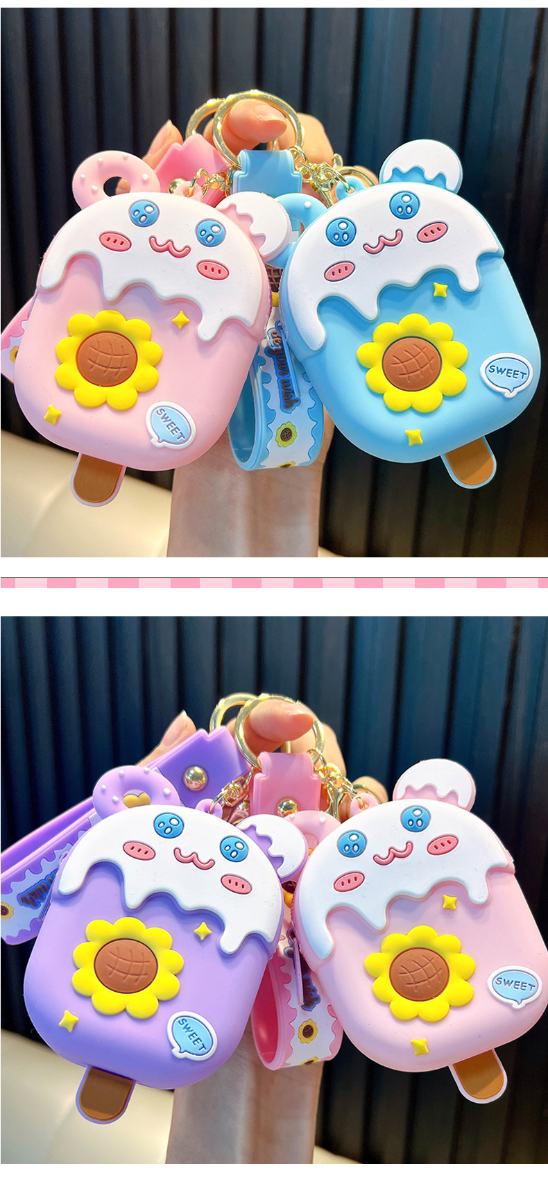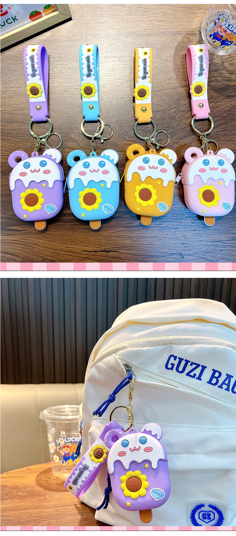 해바라기 아이스크림 곰 동전 지갑 키 체인 헤드폰 보관 가방 열쇠 고리 가방 펜던트 인형 기계 선물