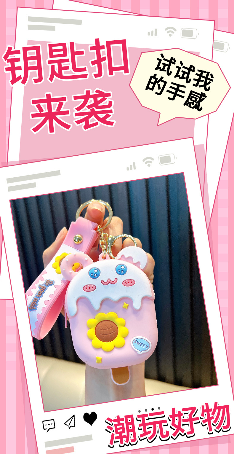 해바라기 아이스크림 곰 동전 지갑 키 체인 헤드폰 보관 가방 열쇠 고리 가방 펜던트 인형 기계 선물스토어 가기