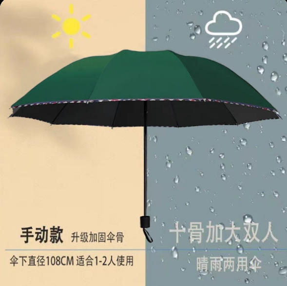 열두 뼈 수동 대형 우산 남성 강화 접는 우산 3 인 우산 선 스크린 우산 여성용 선 스크린 우산