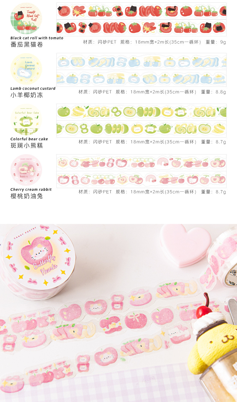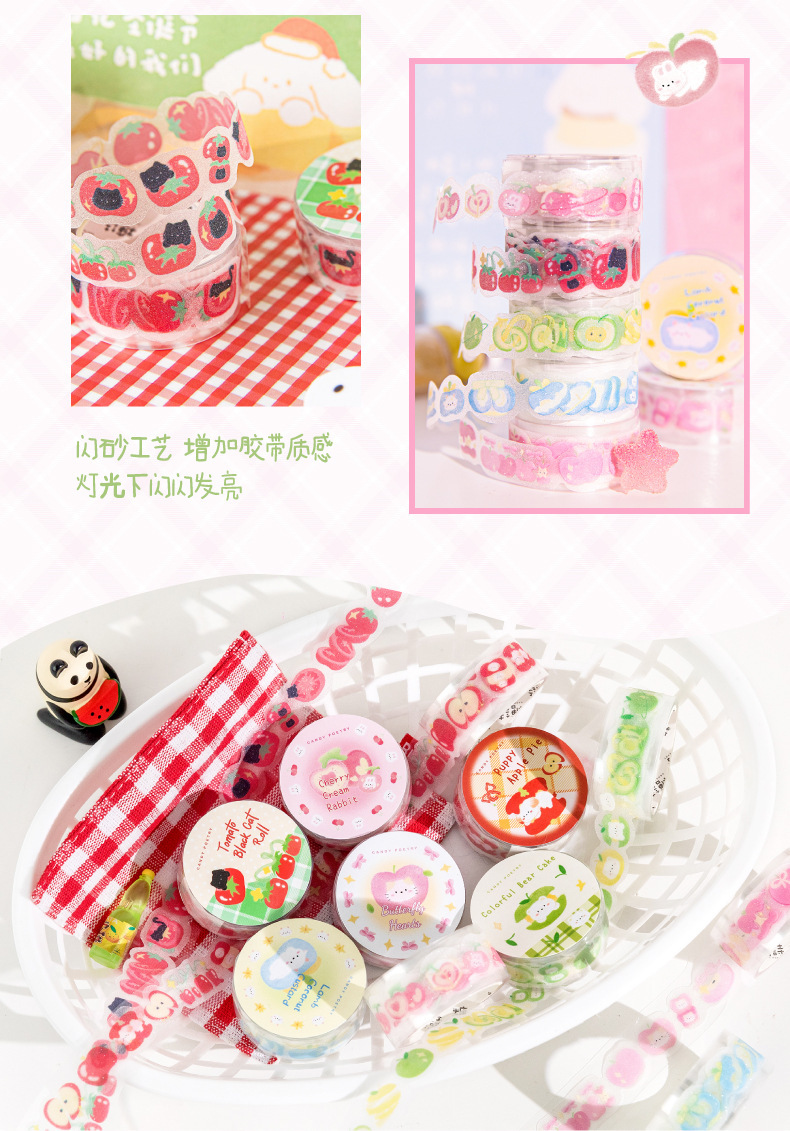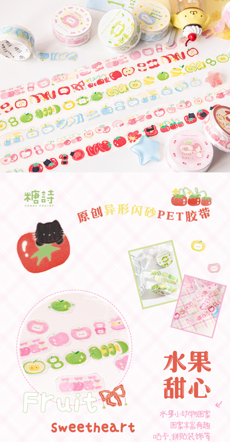 설탕시 플래시 모래 PET 모양의 테이프 과일 연인 시리즈 작은 신선한 귀여운 손 계정 DIY 장식 재료 스티커스토어 가기