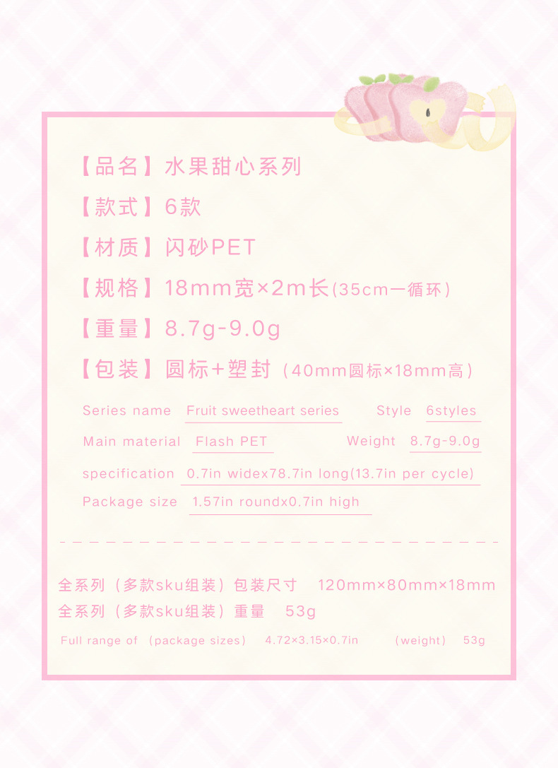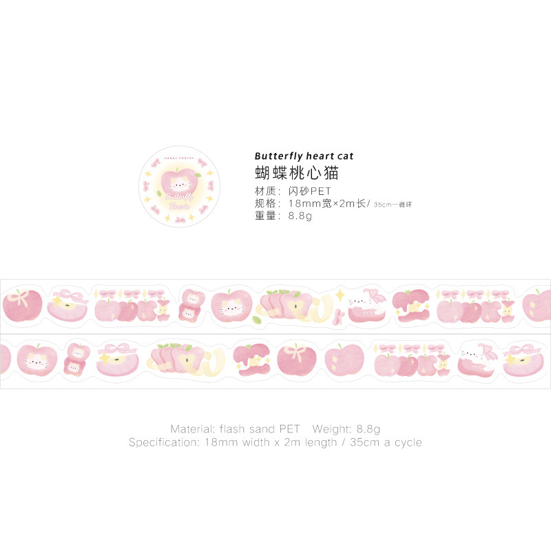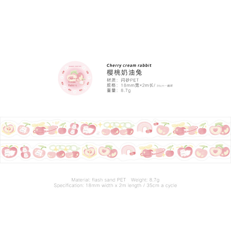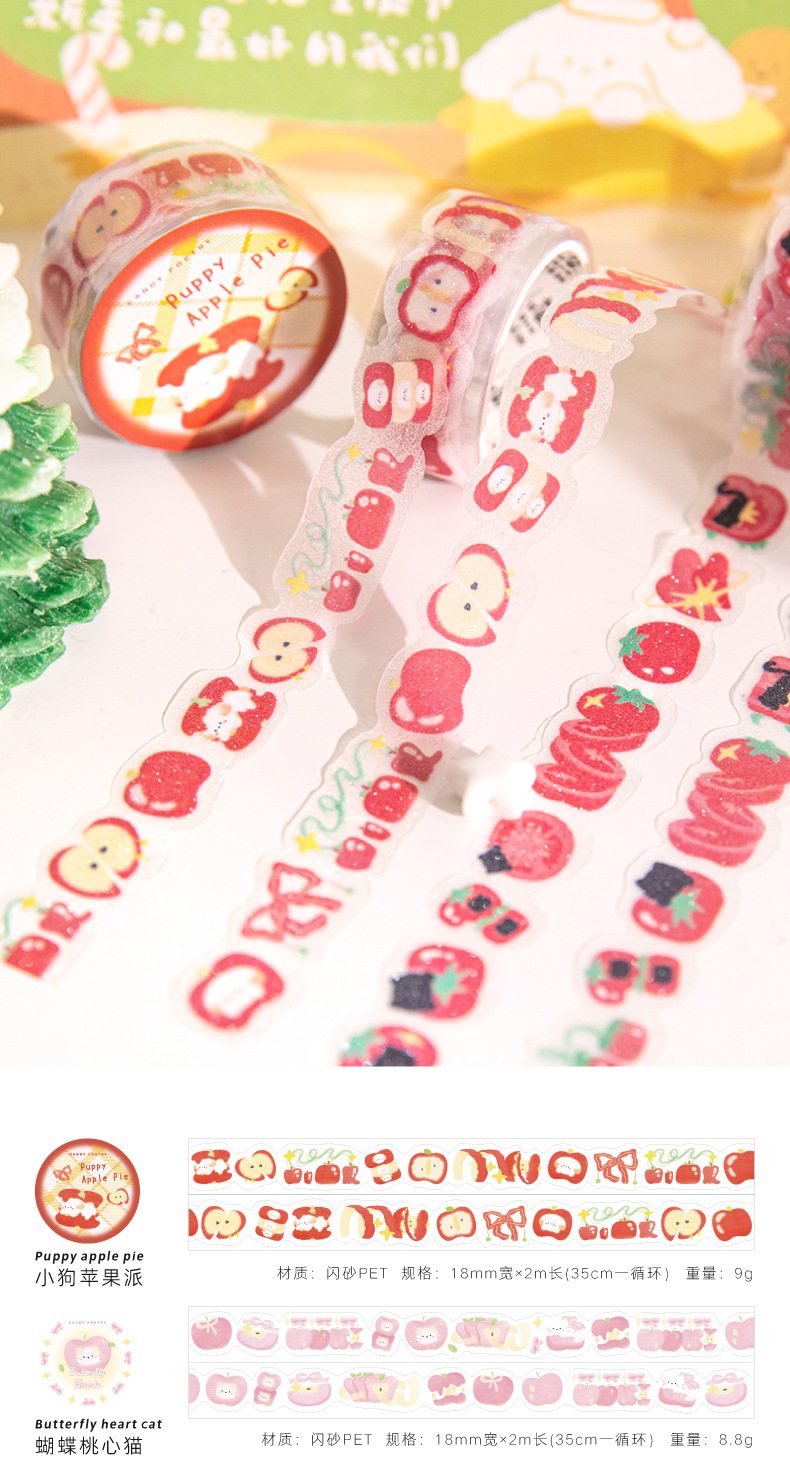 설탕시 플래시 모래 PET 모양의 테이프 과일 연인 시리즈 작은 신선한 귀여운 손 계정 DIY 장식 재료 스티커스토어 가기