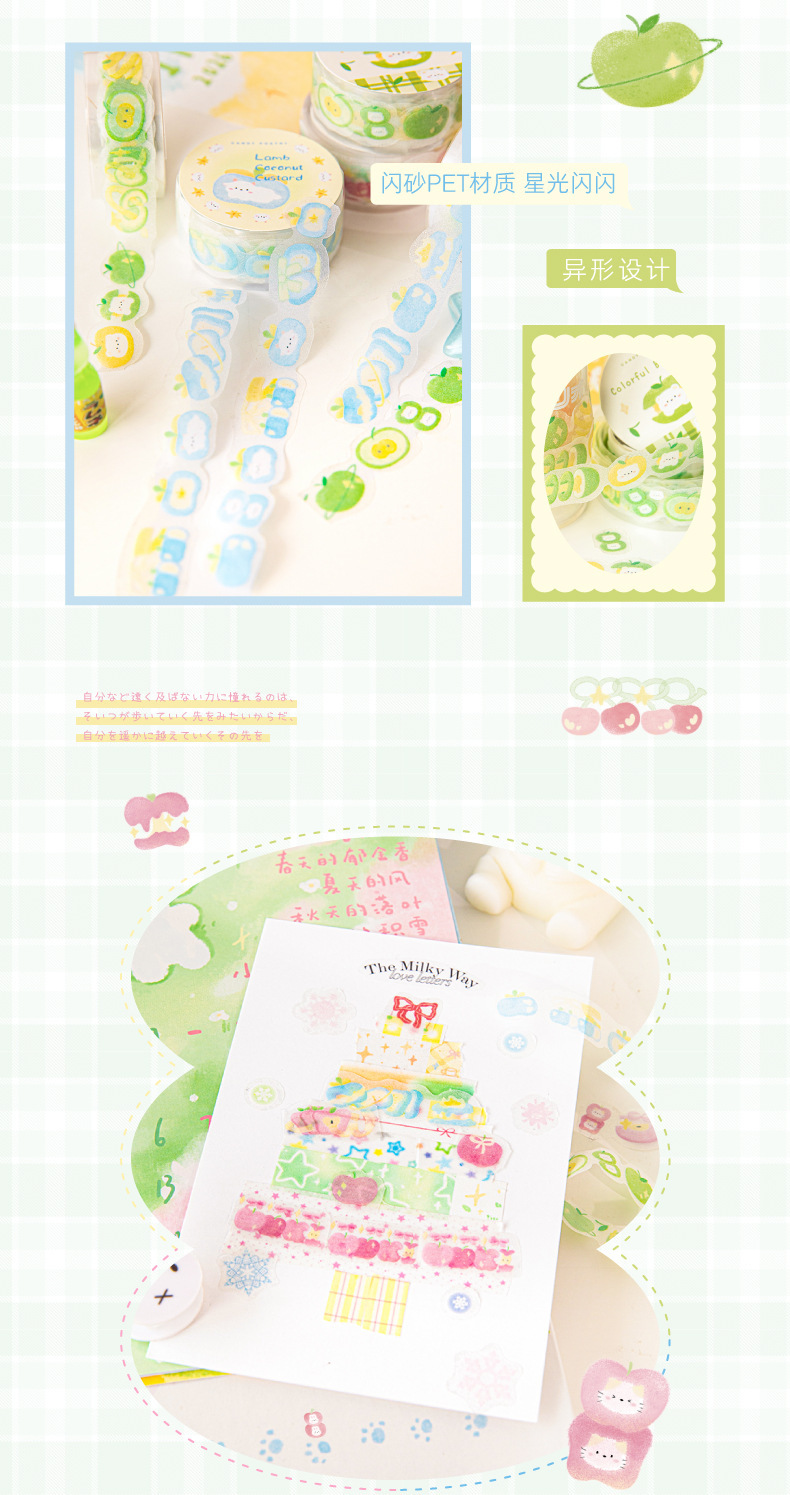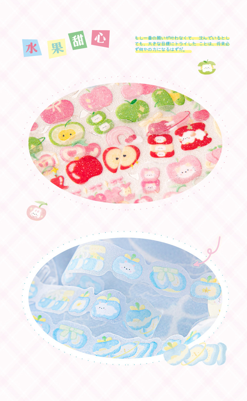 설탕시 플래시 모래 PET 모양의 테이프 과일 연인 시리즈 작은 신선한 귀여운 손 계정 DIY 장식 재료 스티커