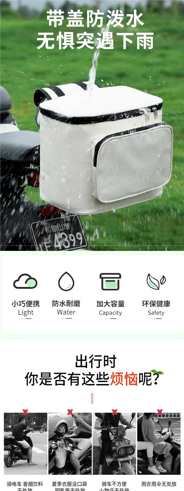 • 흰색 [17L] 방수 지퍼 ★ 헬멧 + 비옷 보관 가능