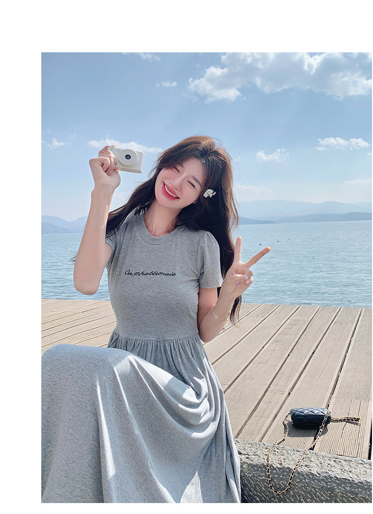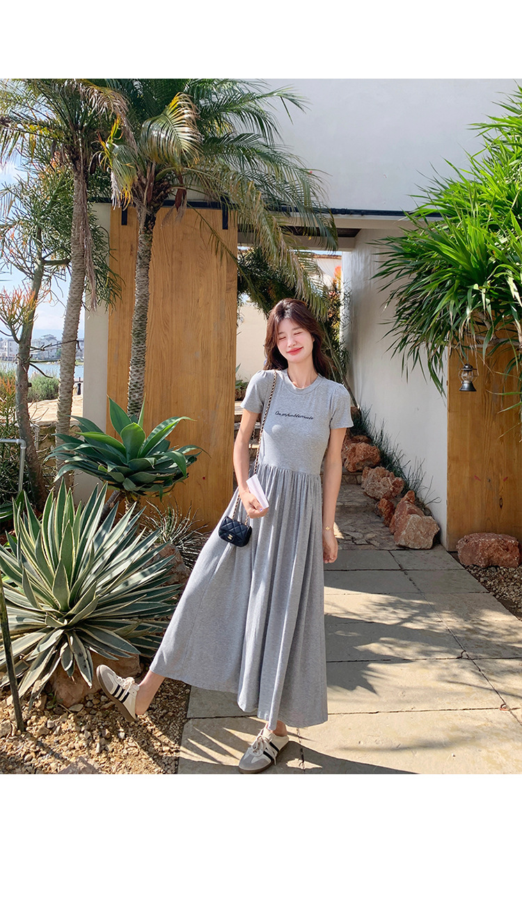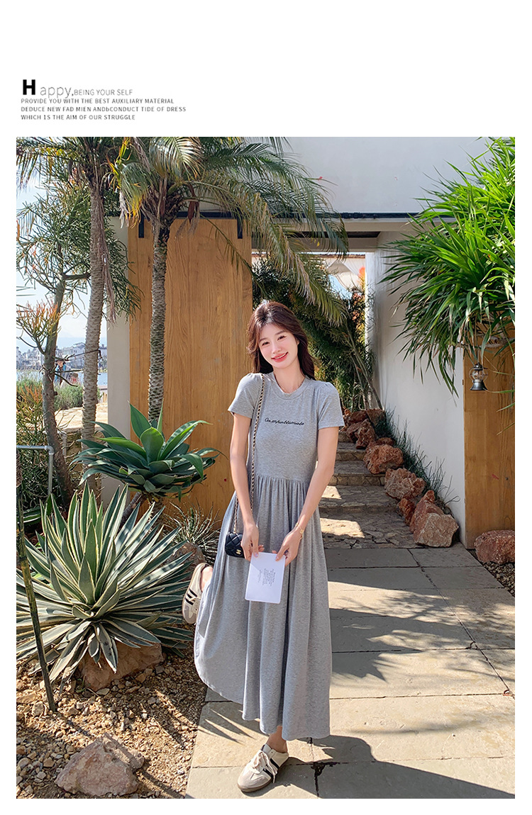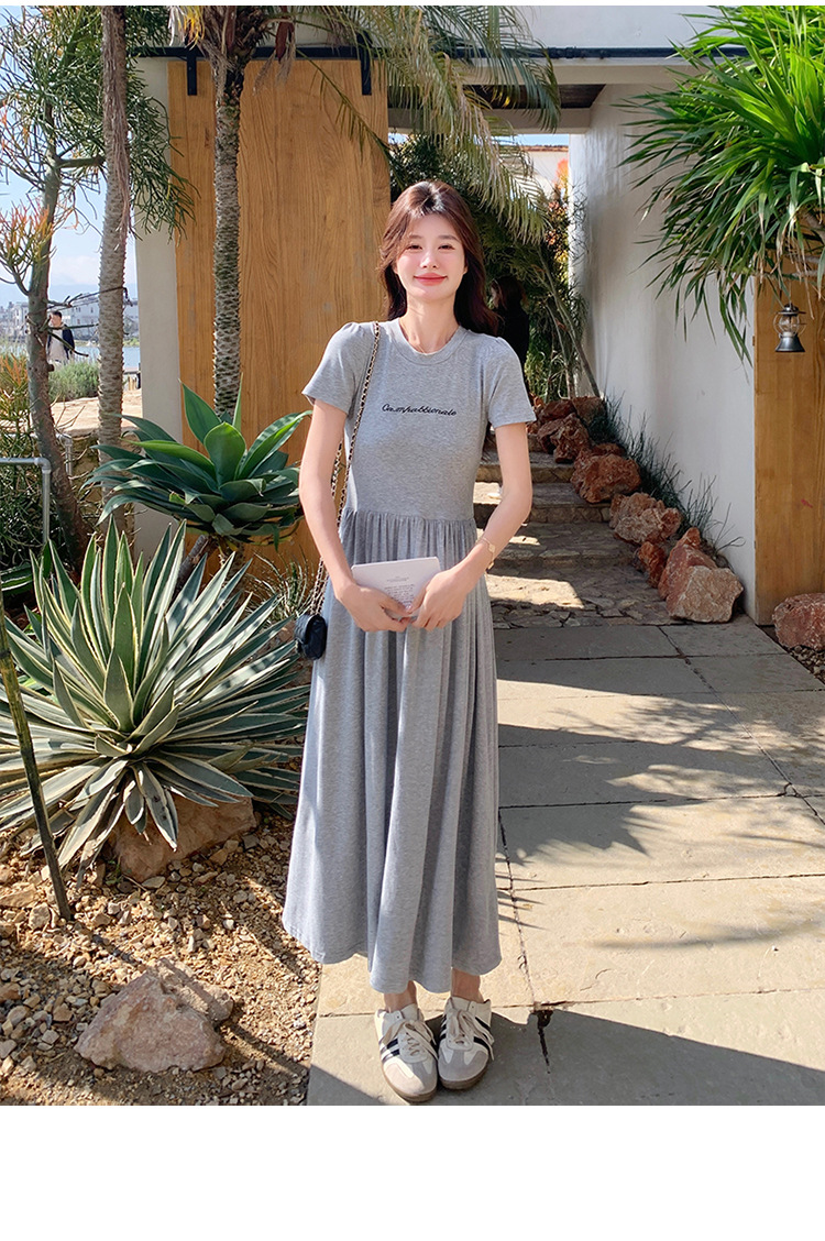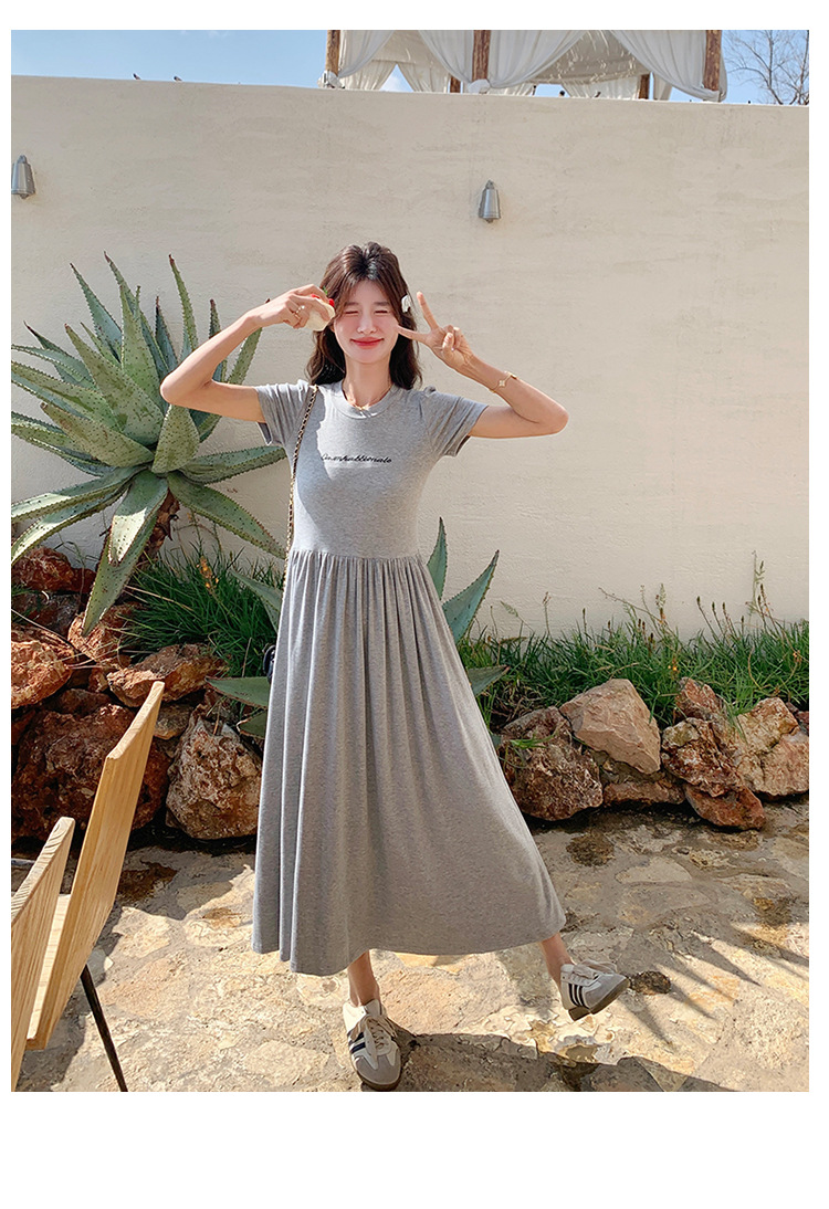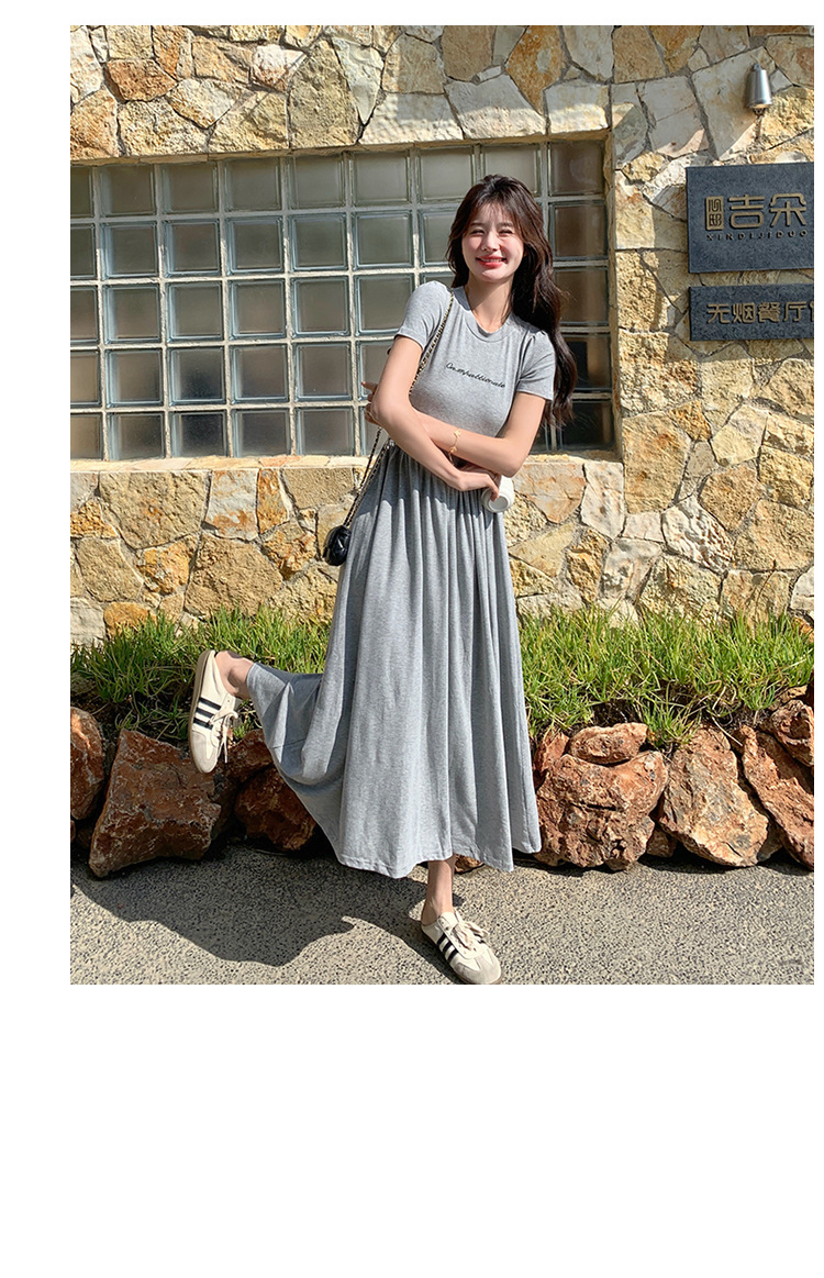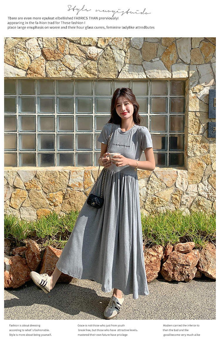 진짜 샷 고급 편지 원피스 여자 2025 년 여름 새로운 프랑스 스타일 Laid-back 높은 허리 슬림 티셔츠 스커트스토어 가기