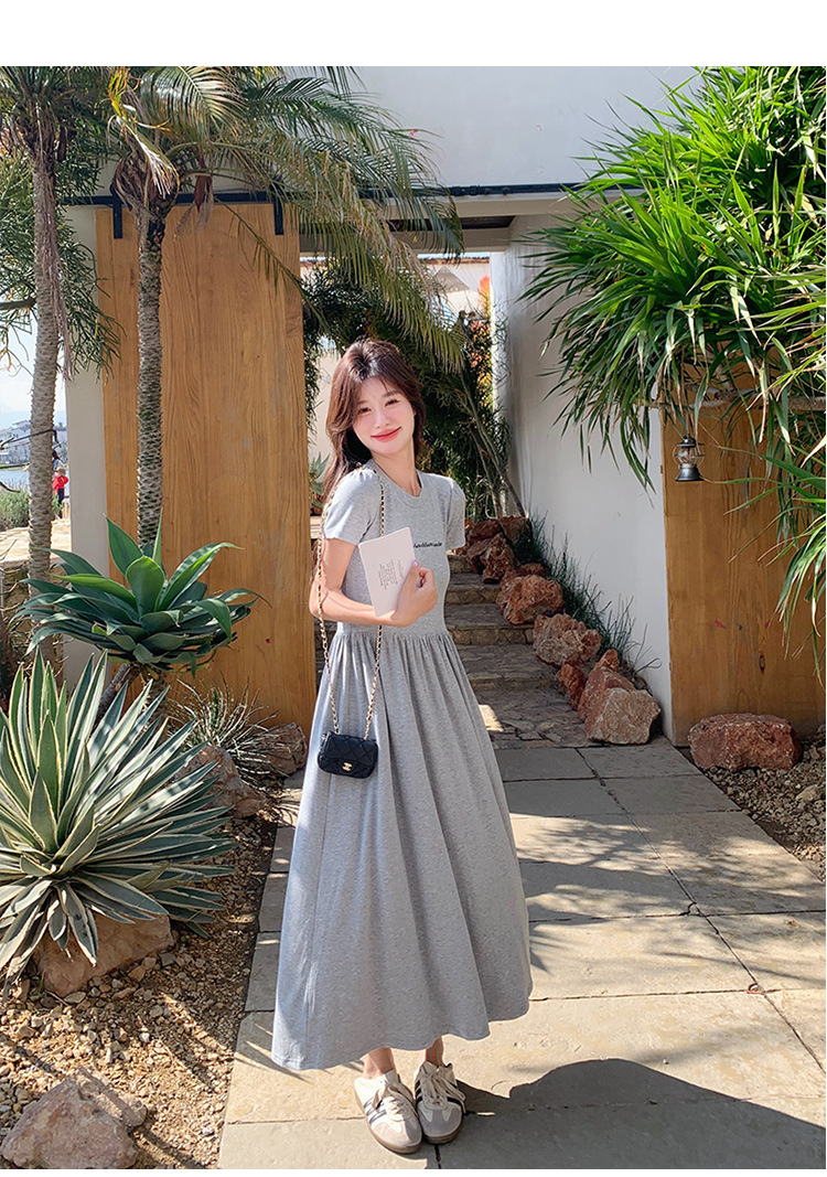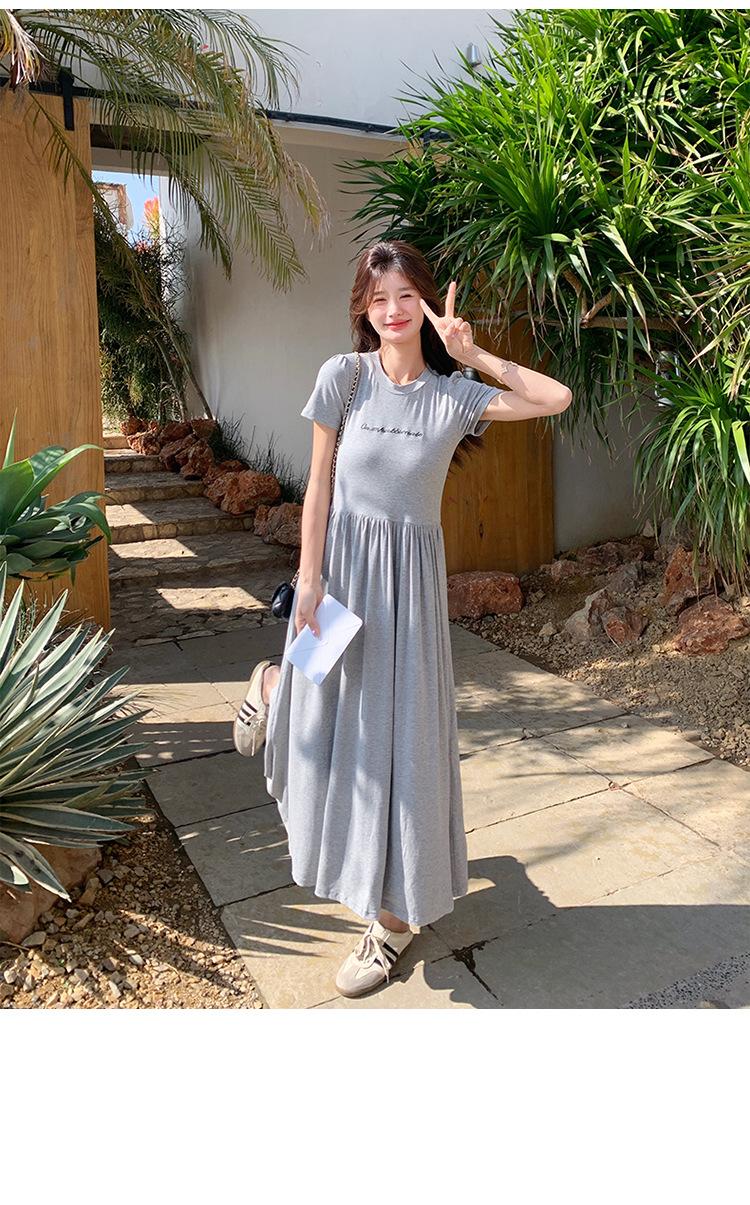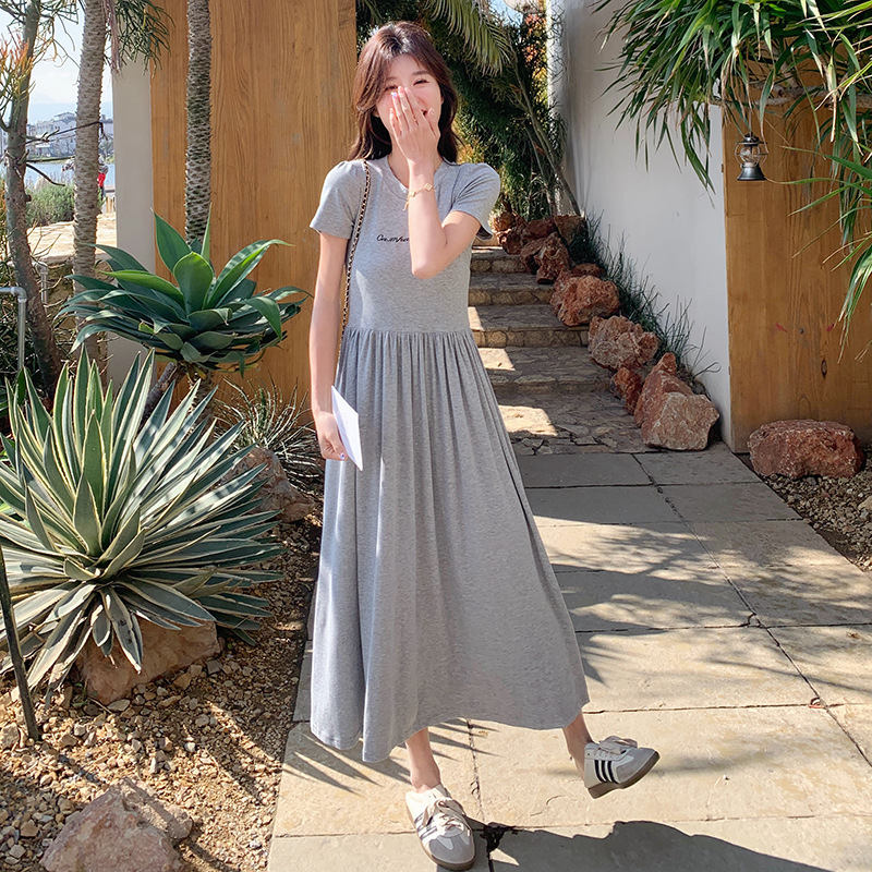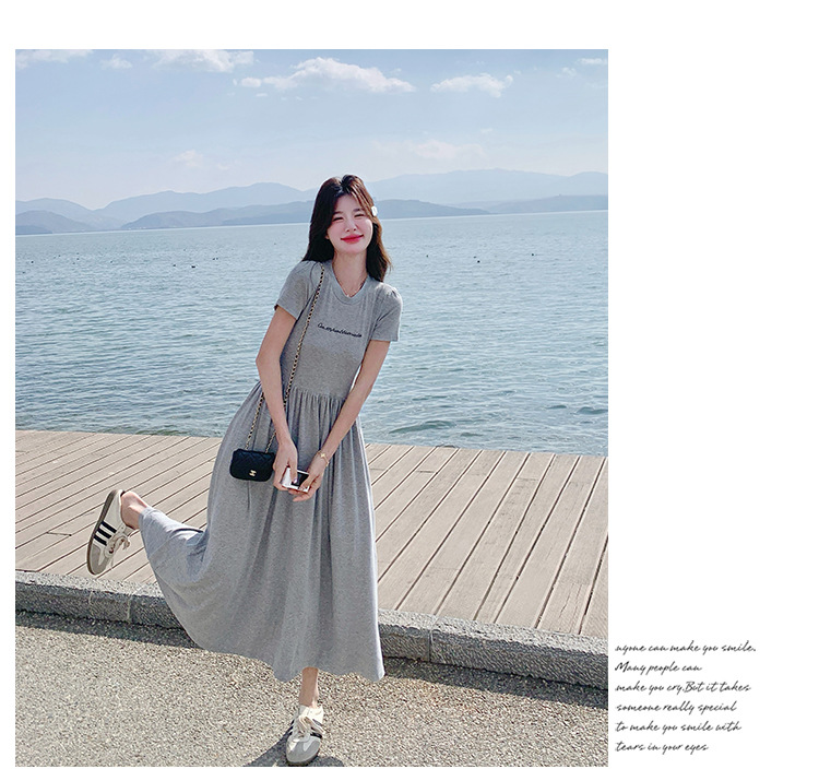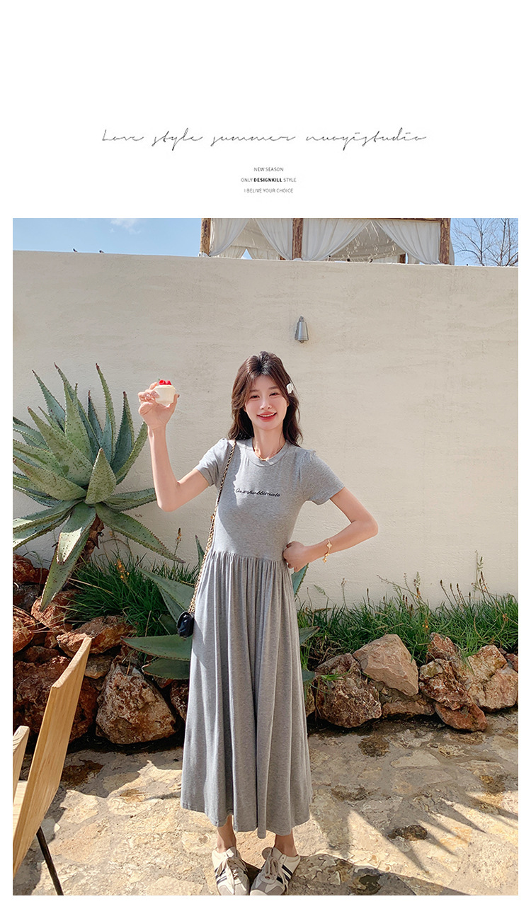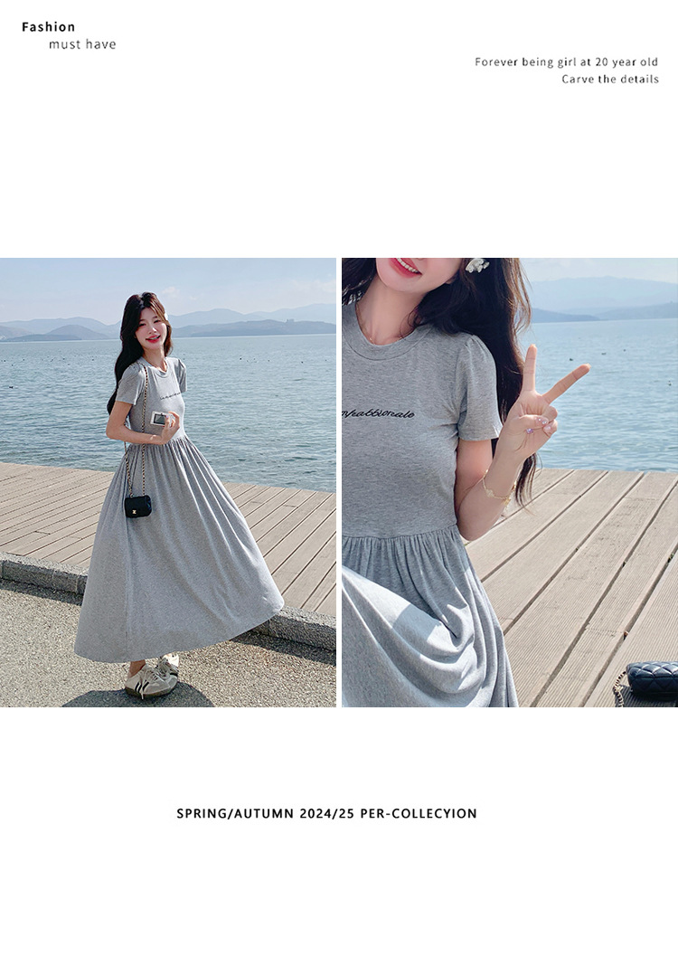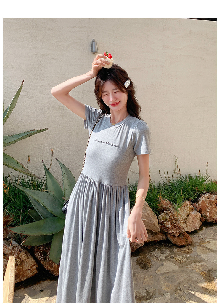 진짜 샷 고급 편지 원피스 여자 2025 년 여름 새로운 프랑스 스타일 Laid-back 높은 허리 슬림 티셔츠 스커트스토어 가기
