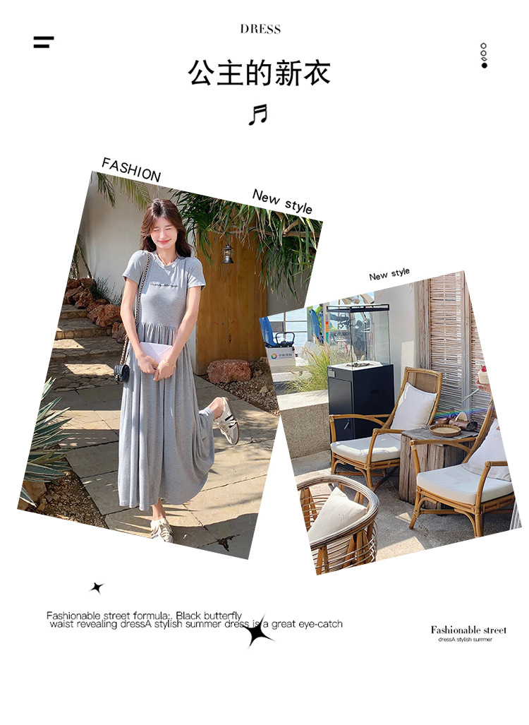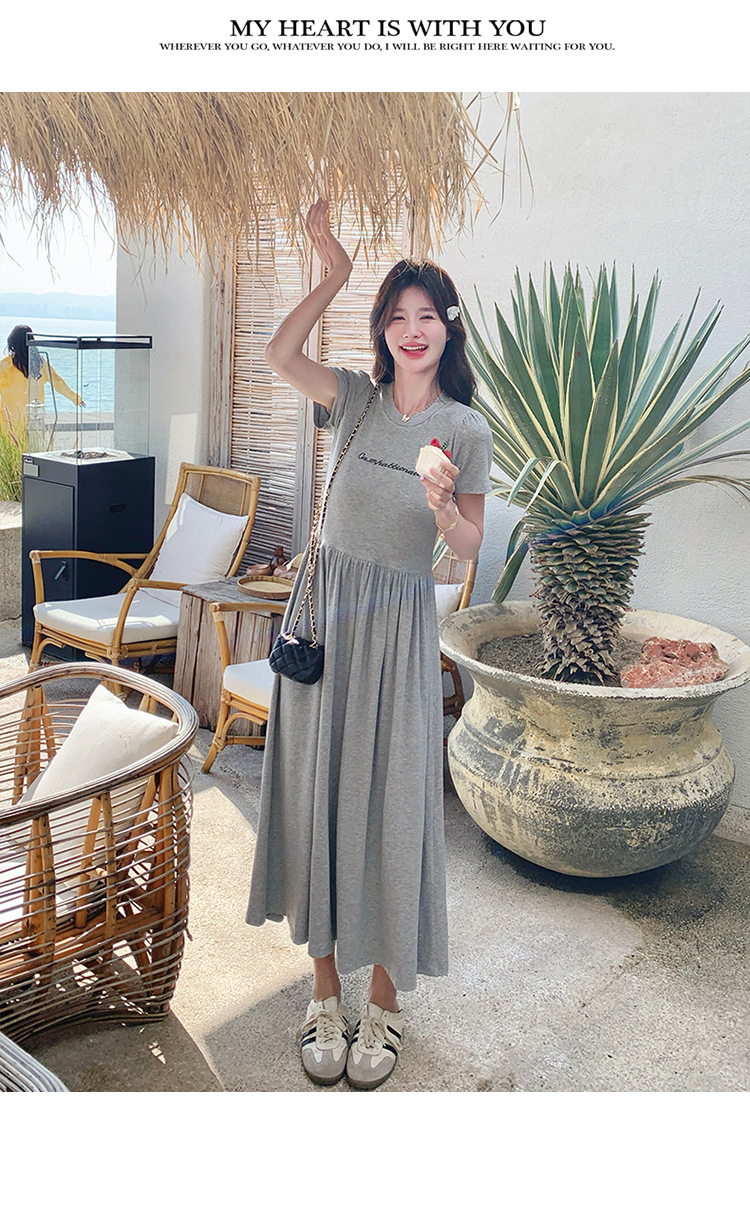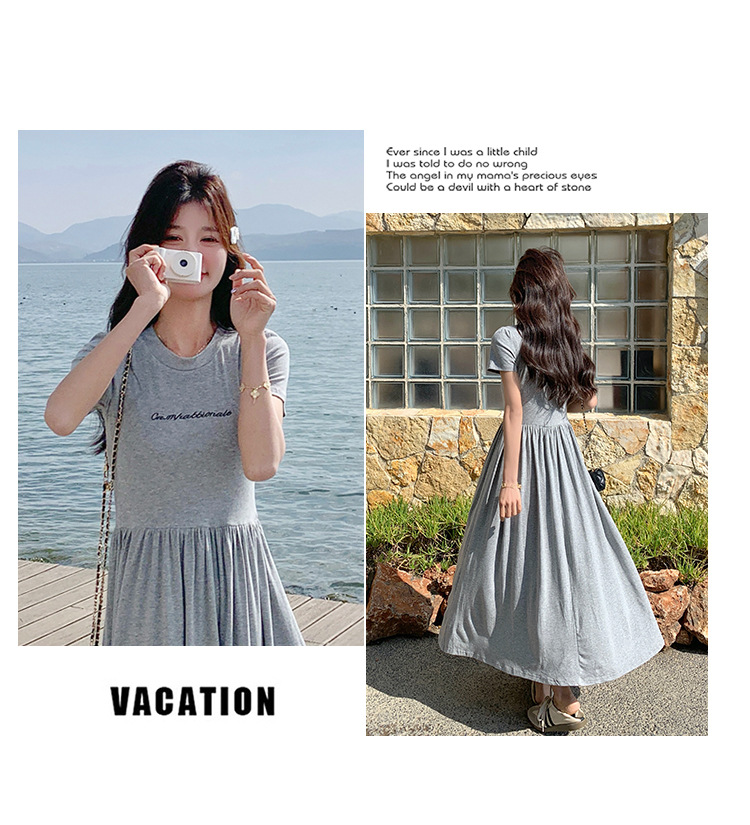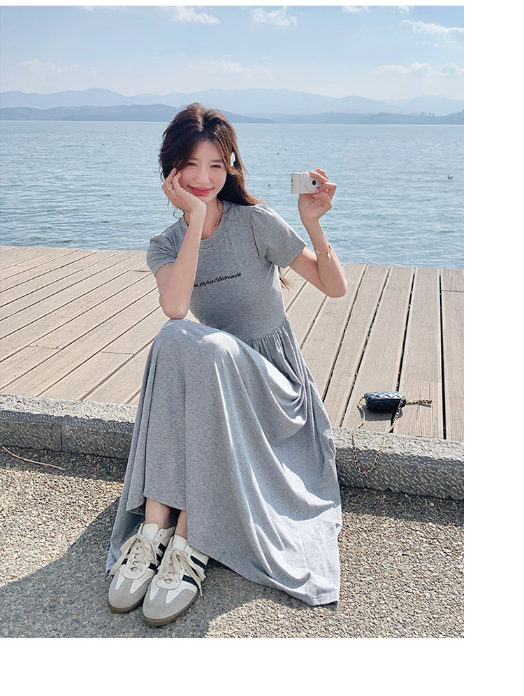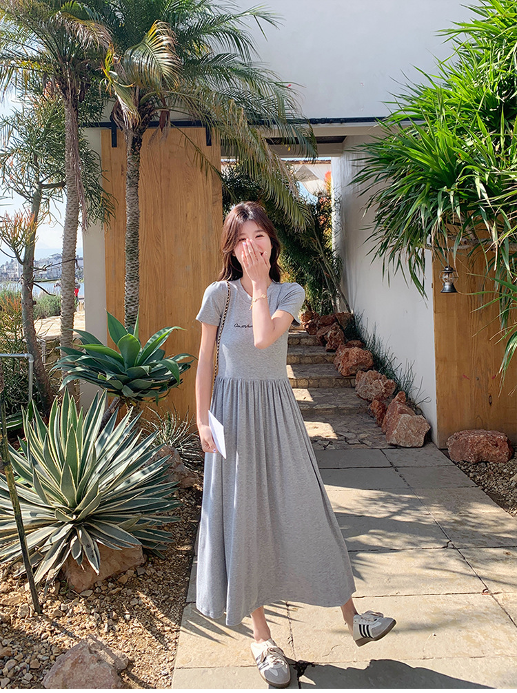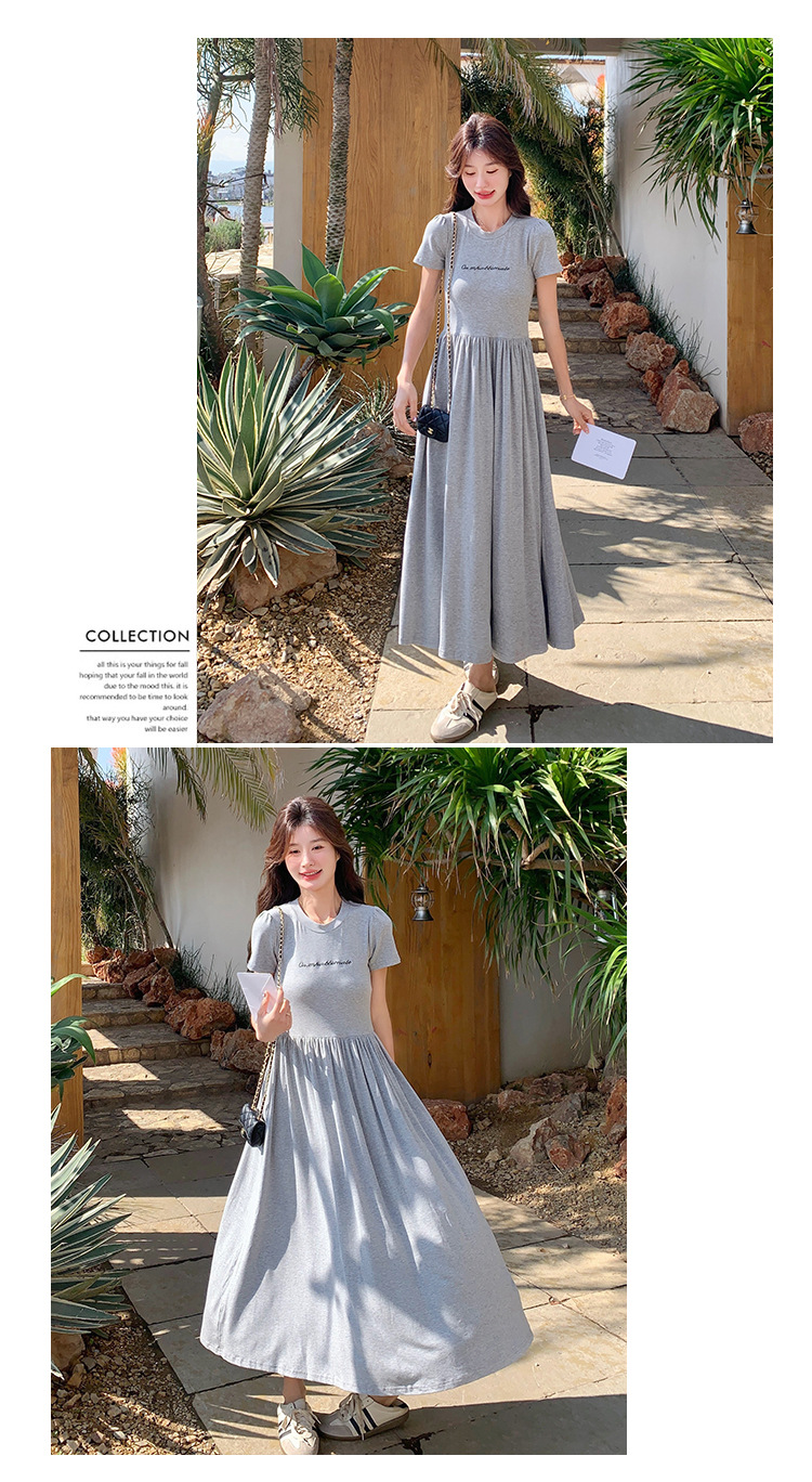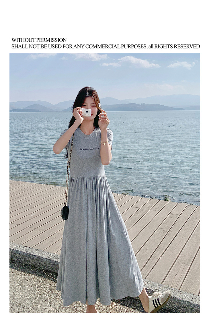 진짜 샷 고급 편지 원피스 여자 2025 년 여름 새로운 프랑스 스타일 Laid-back 높은 허리 슬림 티셔츠 스커트스토어 가기