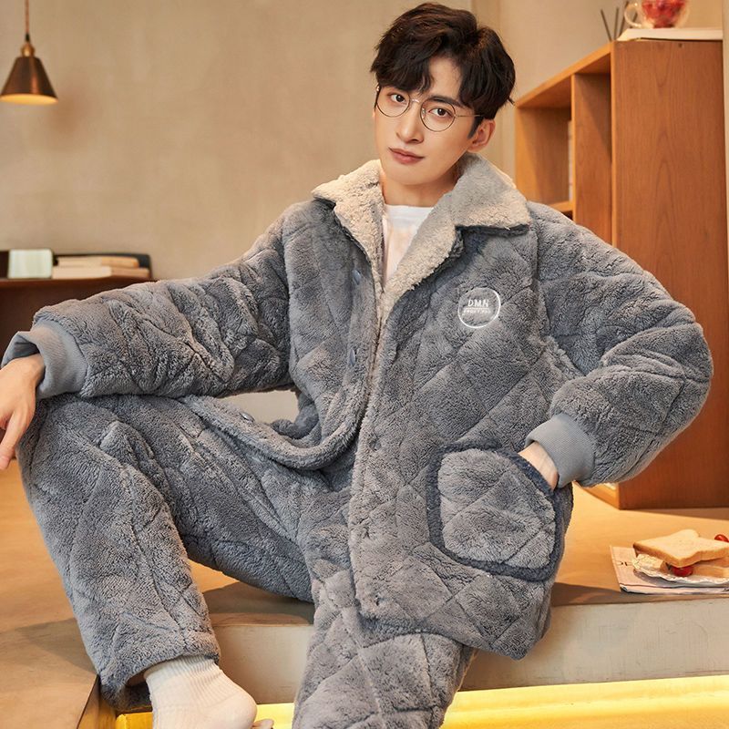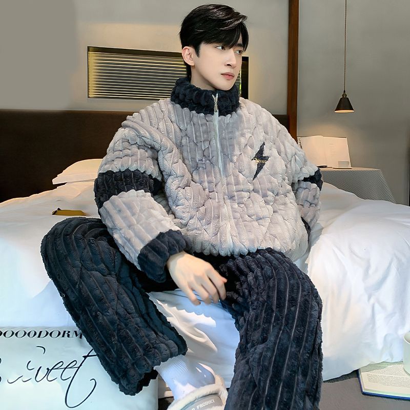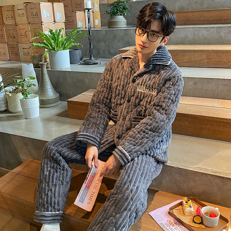 남성용 가을 겨울 잠옷, 산호 벨벳 3겹 두꺼운 누비 따뜻한 청소년 벨벳 스포츠 홈웨어 세트스토어 가기