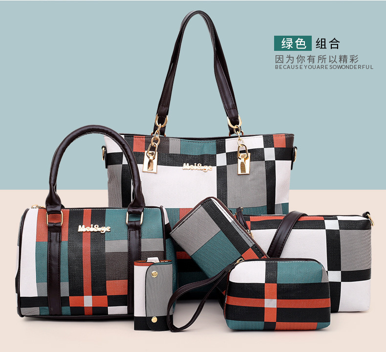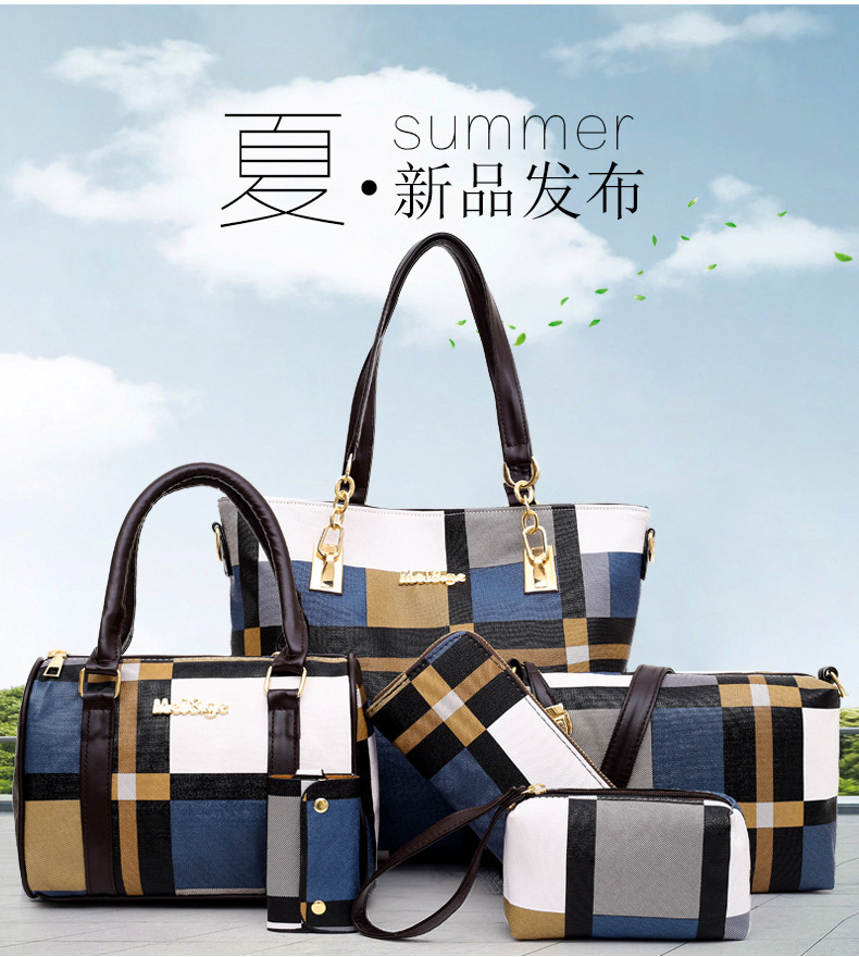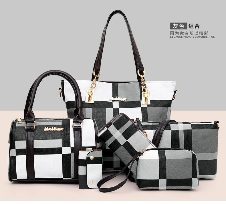 클래식 6 피스 세트 마더 백 크로스 바디 숄더 백 유럽과 미국 및 한국 스타일 패션 올 매치 여성 컬러 콘트라스트 체크 핸드백스토어 가기