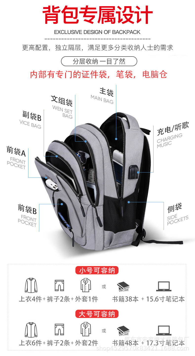 배낭 남성용 대용량 배낭 충전식 USB 비즈니스 컴퓨터 가방