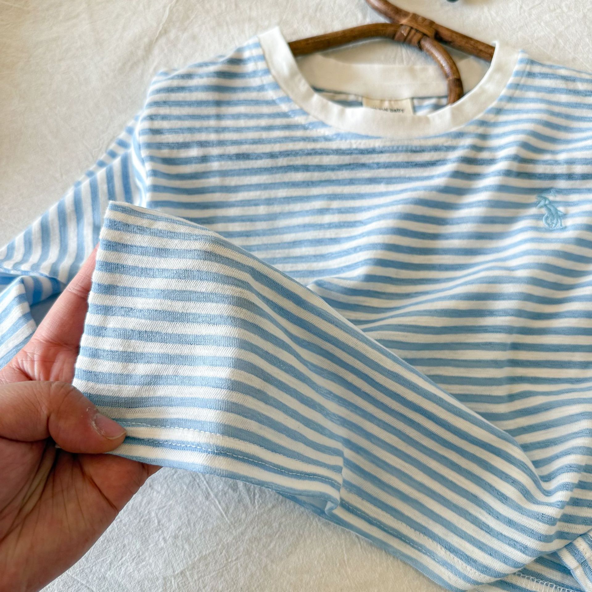 어린이 선 스크린 티셔츠 2025 여름 새 소년 소녀 줄무늬 티셔츠 아기 통기성 에어컨 옷 어린이 크루 넥 어퍼스토어 가기