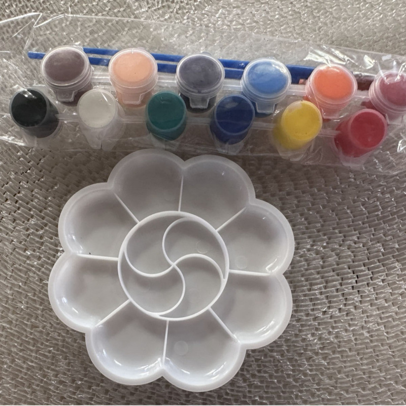 • 12가지 색상의 물감 + 브러쉬 2개 + 물감 팔레트 1개
