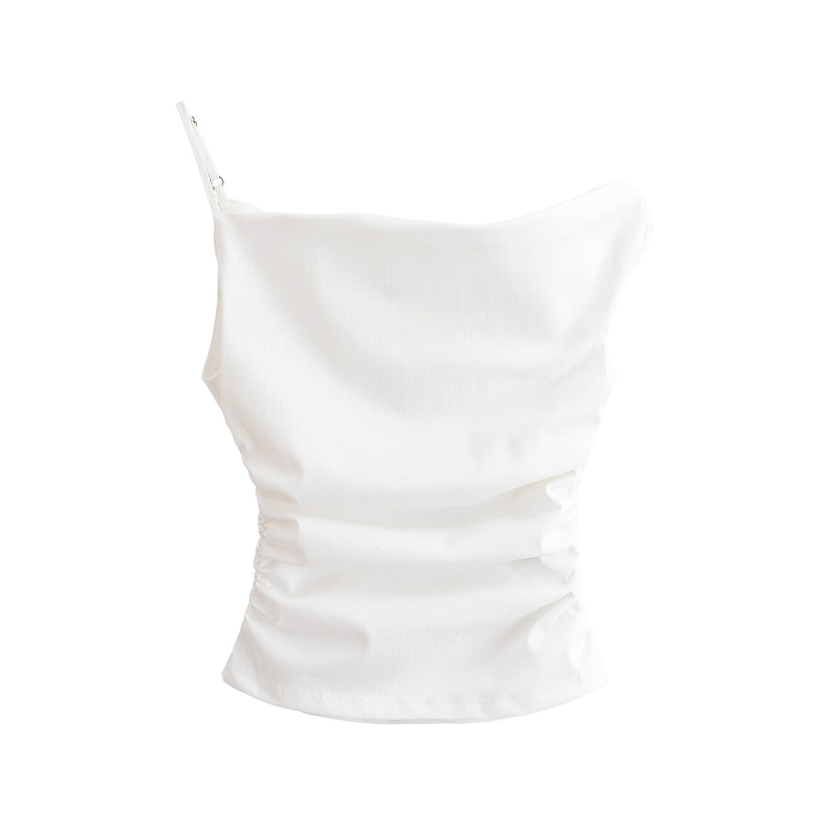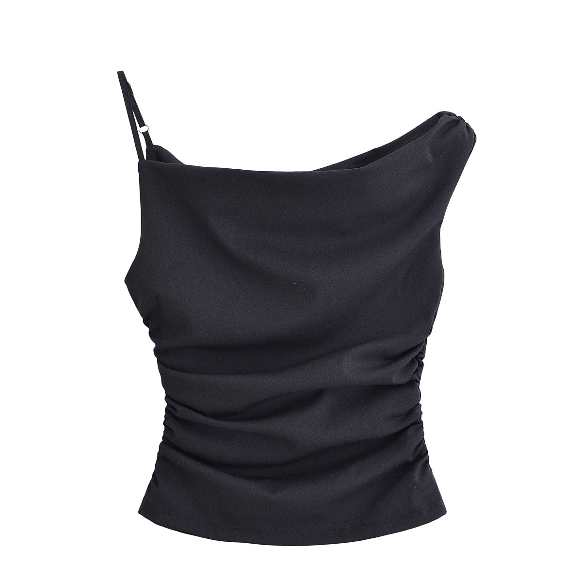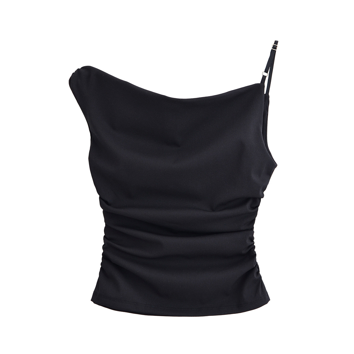 2025 봄 새로운 유럽과 미국의 국경 여성 거리 패션 성격 주름 비대칭 탑 w09 11354