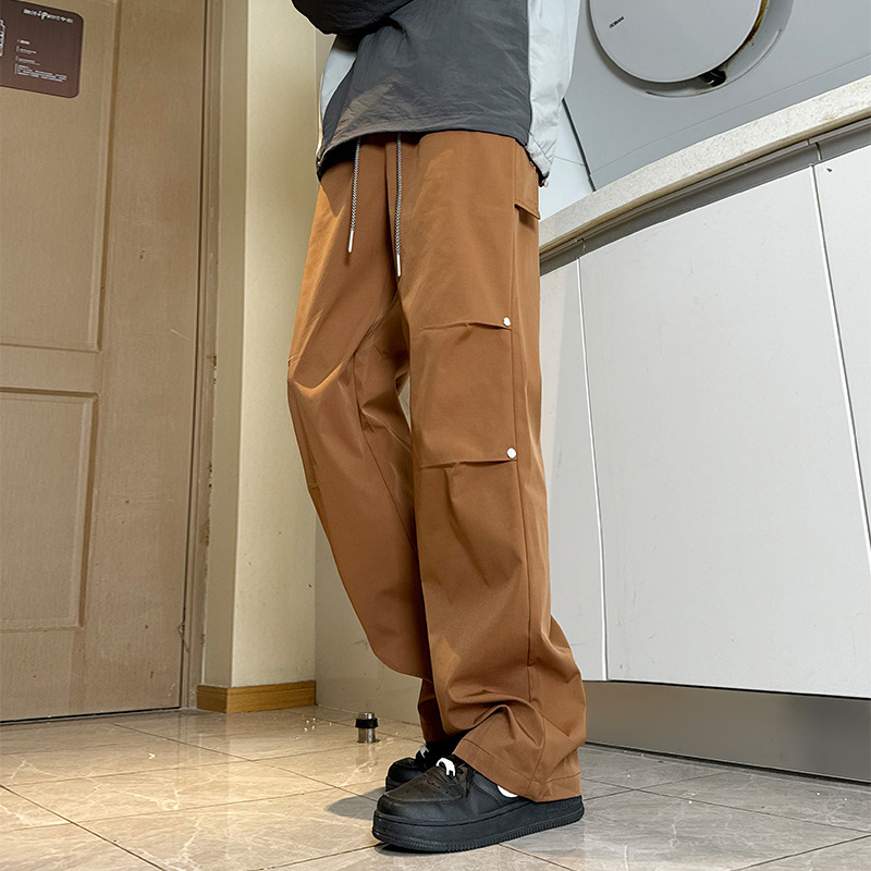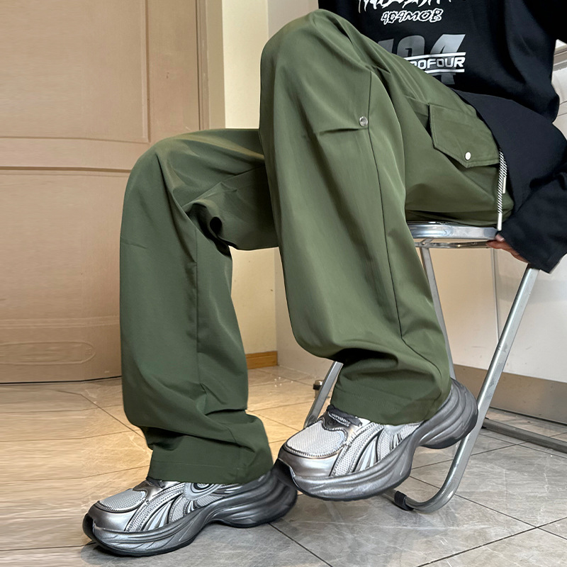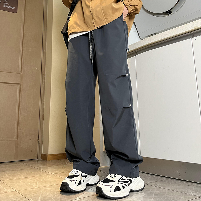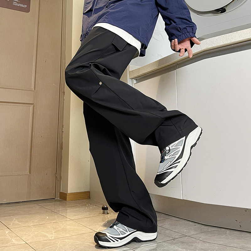 남성용 루즈 스트레이트 여름 얇은 청소년 봄, 가을 속건성 블랙 캐주얼 바지스토어 가기