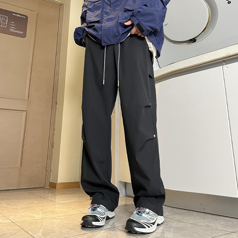 남성용 루즈 스트레이트 여름 얇은 청소년 봄, 가을 속건성 블랙 캐주얼 바지