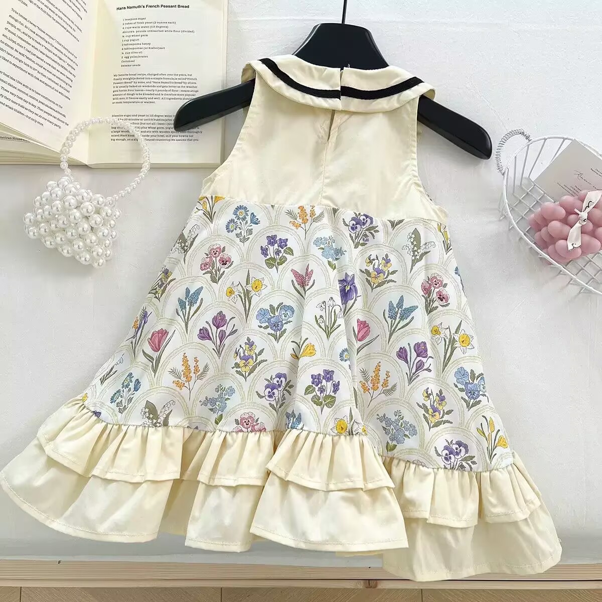 여자 원피스 여름 2025 새로운 패션 인쇄 민소매 옷깃 빅 원피스 프랑스 복고풍 공주 원피스스토어 가기