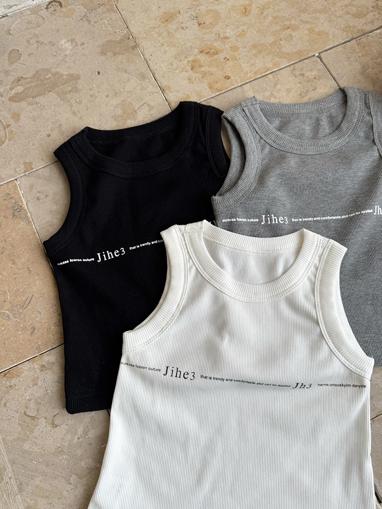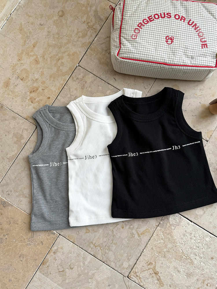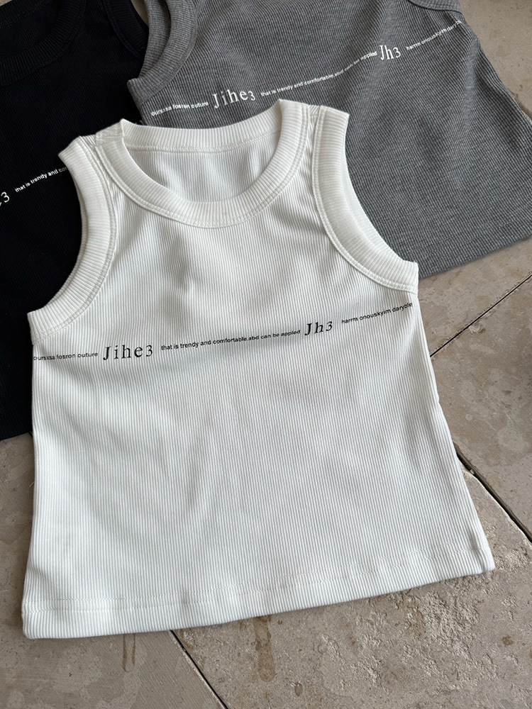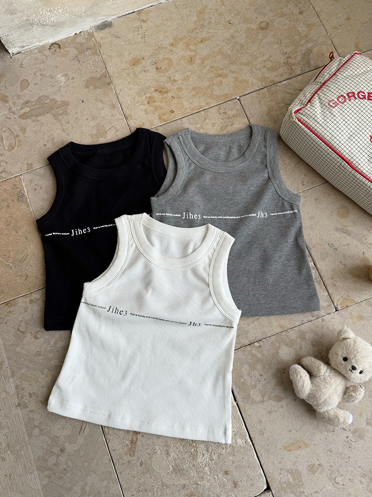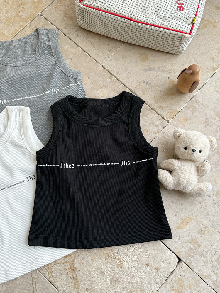 어린이 3 색 편지 조끼 2025 여름 새 일본과 한국 스타일 간단한 편지 흑백 회색 기본 T 소년 소녀스토어 가기
